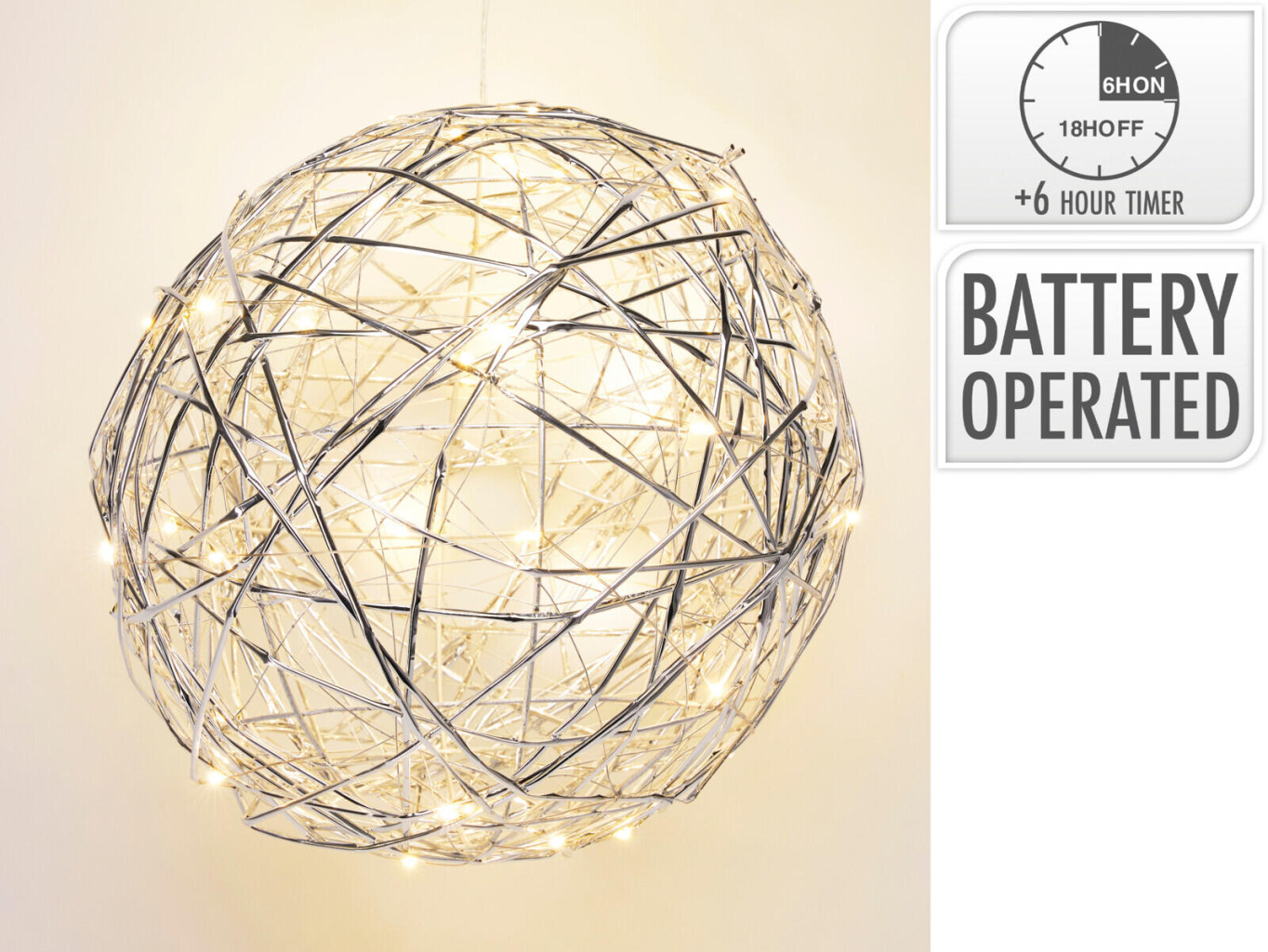 Stříbrná osvětlená koule se bude vyjímat nejen v okně, ale třeba i jen tak zavěšená v místonosti.