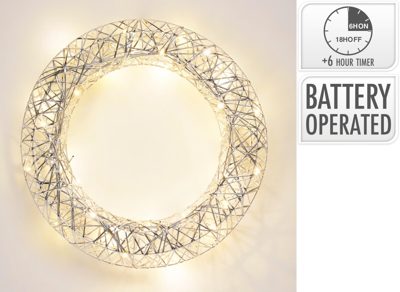 Stříbrný osvětlený věnec se bude vyjímat nejen v okně, ale třeba i jen tak zavěšená v místonosti.