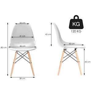 Designová židle nejen skvěle vypadá, je i pohodlná. Sedák má ergonomický tvar a nabízí dostatek komfortu i při delším sezení. Dřevěné nohy jsou zpěvněny kovovýmvýpletem. Ten židli dodává originální design i odpovídající nosnost 120 kg. Nohy jsou zakončeny plastovou patkou, která chrání podlahu před nechtěným poškrábáním.