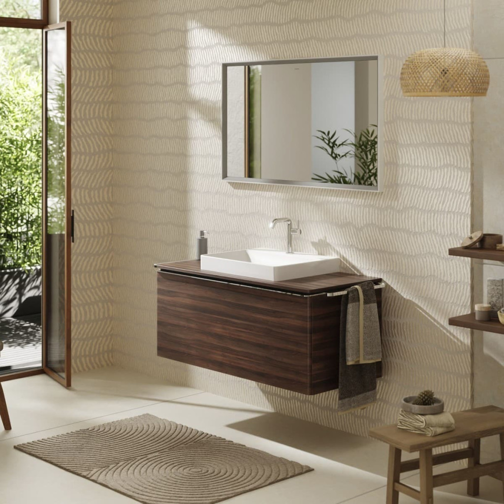 Deska pod umyvadlo Hansgrohe Xelu Q 118x1,6x55 cm tmavý ořech 54111630