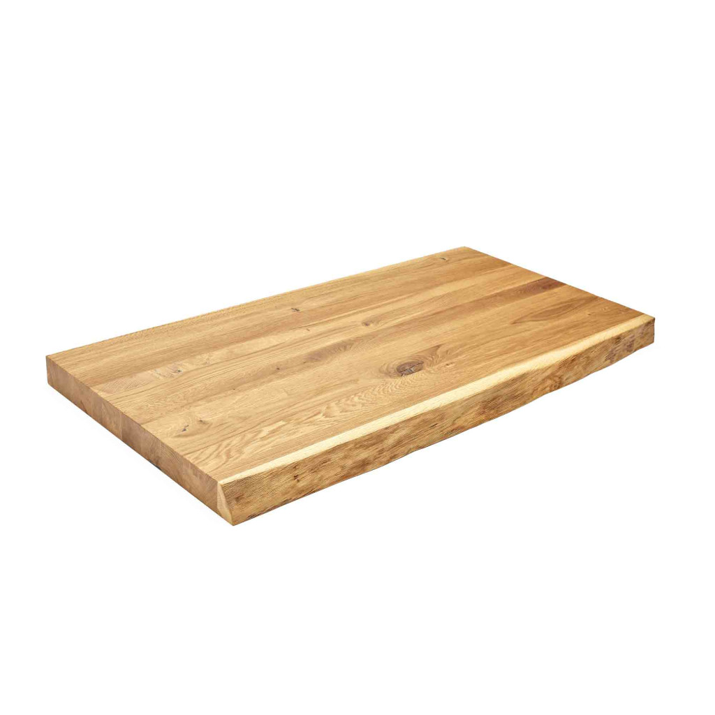 Deska z masivního dubu se instaluje na konzole. Doporučujeme použít dostatečně masivní konzole (např. KONZOLEH), deska je poměrně masivní a těžká - nosnost konzolí je dostatečná, jde spíše o uchycení do zdi. Hloubka desky je různá, pohybuje se okolo 50 cm. Různá hloubka desek a křivost přední hrany není důvodem k reklamaci, jedná se o přírodní materiál.