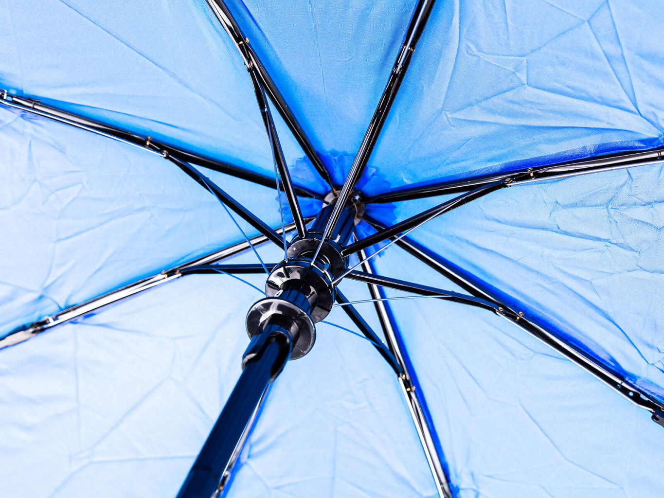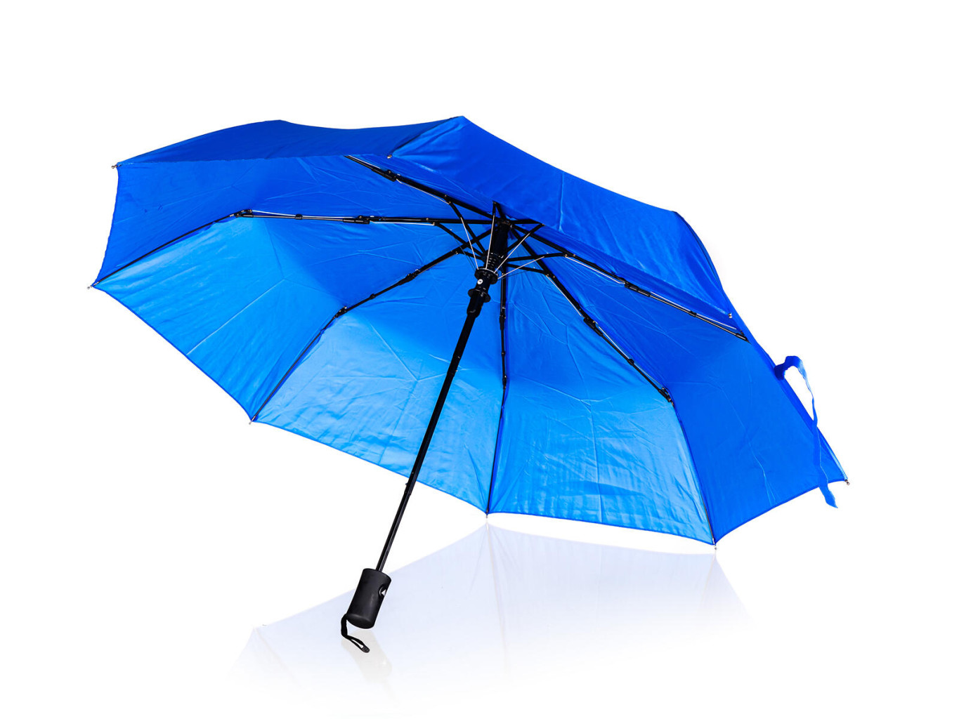 Skládací deštník 52 cm, v modré barvě, slouží k ochraně proti dešti a přímému slunci.