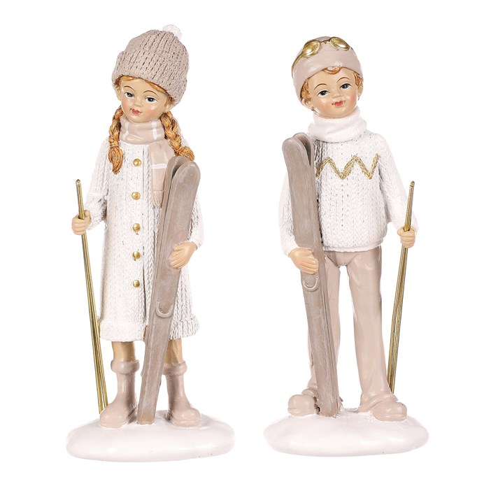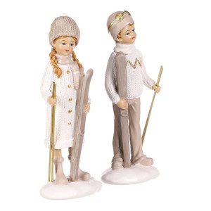 Dotaz na produktVytvořte si zimní pohodu s našimi polyresinovými figurkami chlapce a dívky stojícími s lyžemi. Tyto roztomilé figurky představují děti, oděné v dobovém teplém oblečení ve světlých odstínech, béžových až bílých tónech. S jejich milým vzhledem a radostným postojem přinášejí do vašeho prostoru atmosféru zimních radovánek a dobrodružství na svahu.