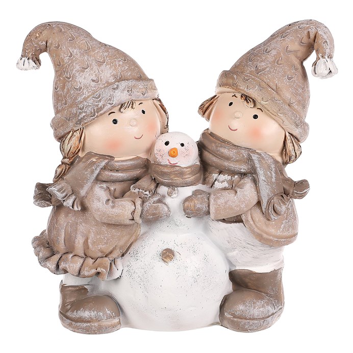Dotaz na produktPřineste si do svého domova kouzlo dětské radosti z Vánoc a zimy s figurkou dvou dětí se sněhulákem. Tyto roztomilé postavičky představují ratolesti v teplém oblečení, jak si opečovávají svého společného kamaráda sněhuláka. Jedná se o postavy chlapečka a holčičky, jenž představují nadšení ze zimních venkovních radovánek. Díky jejich barevnému sladění se perfektně hodí pro vánoční výzdobu a jsou ideálními dekoracemi na poličku, stůl, komodu, okenní parapet a další viditelná místa. S jejich roztomilými tvářičkami přinesou do vašeho interiéru kouzlo dětské radosti a andělské nevinnosti.