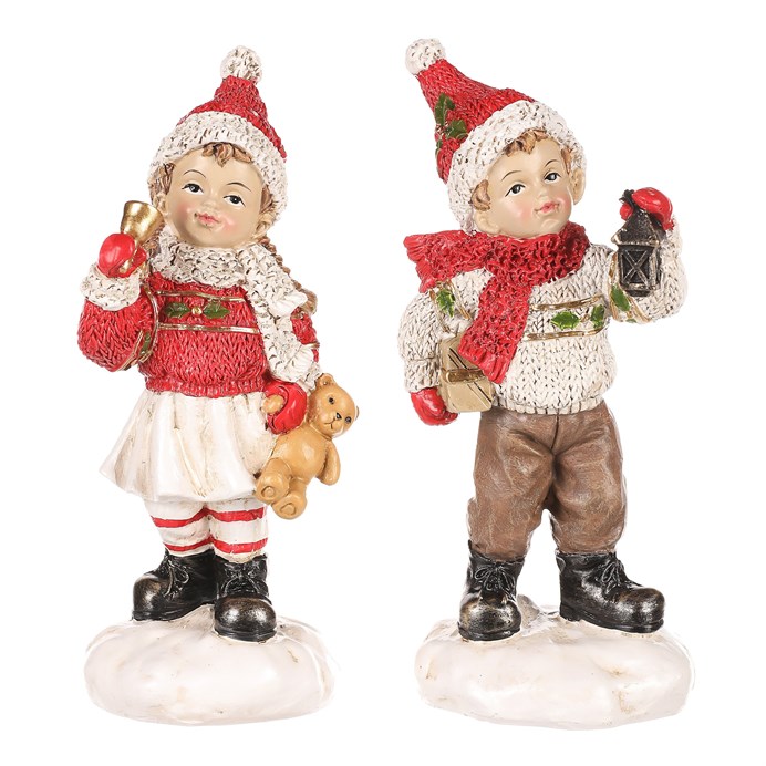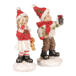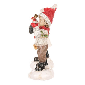 Dotaz na produktPřidejte do svých vánočních aranží tuto krásnou dekorační figurku, která je k dostání v mixu dvou druhů, a to buď chlapce s dárkem anebo dívky s medvídkem. Oba jsou zimně oblečeni, mají červenou čepičku a jsou z keramiky. Vypadají, jako by se zrovna vrátili ze zimní procházky. S teplým pleteným svetrem, šálou a dalšími ozdobnými doplňky, jsou nejen neodolatelnými vánočními postavičkami, ale také nádhernými ozdobami na stůl, poličku či do vitríny. Figurka dívky či chlapce svým veselým provedením přináší do prostoru hravost a nefalšovanou dětskou radost.