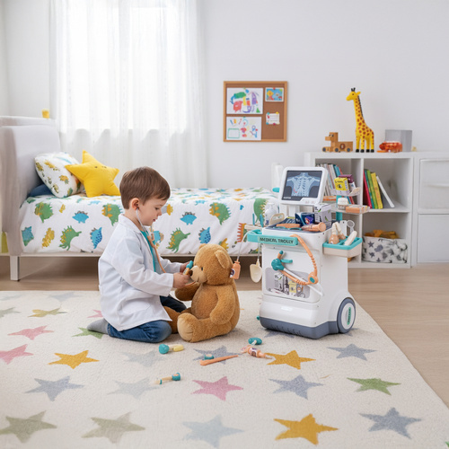 Dotaz na produktDětská sada Doktor s XXL doplňky je skutečná nemocnice pro děti – 26 dílků, vozík na kolečkách, EKG a rentgenový panel a realistické zvukové a světelné efekty. Není to jen hračka, ale plnohodnotný nástroj pro emocionální, kognitivní a sociální rozvoj. Děti se učí empatii, odvaze a komunikačním dovednostem při hraní na skutečného lékaře.