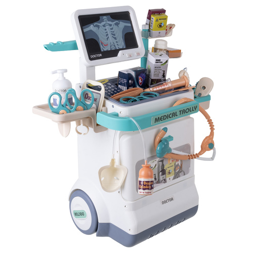 -Skutečná lékařská stanice doma - velký lékařský vozík s EKG a rentgenovým panelem, policemi a světelnými a zvukovými efekty umožňuje dítěti cítit se jako skutečný lékař.