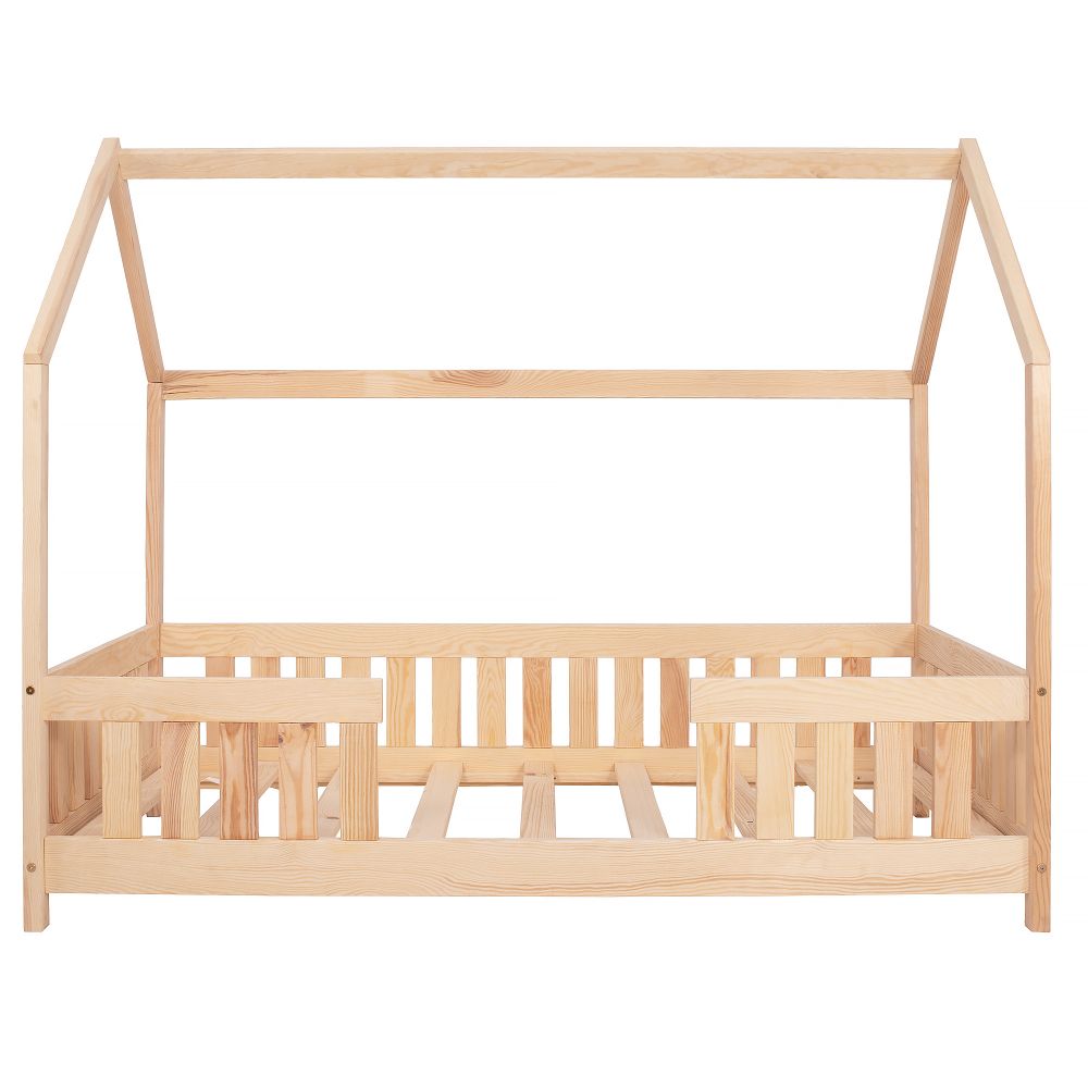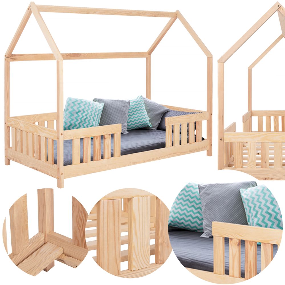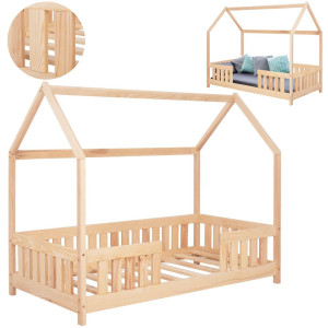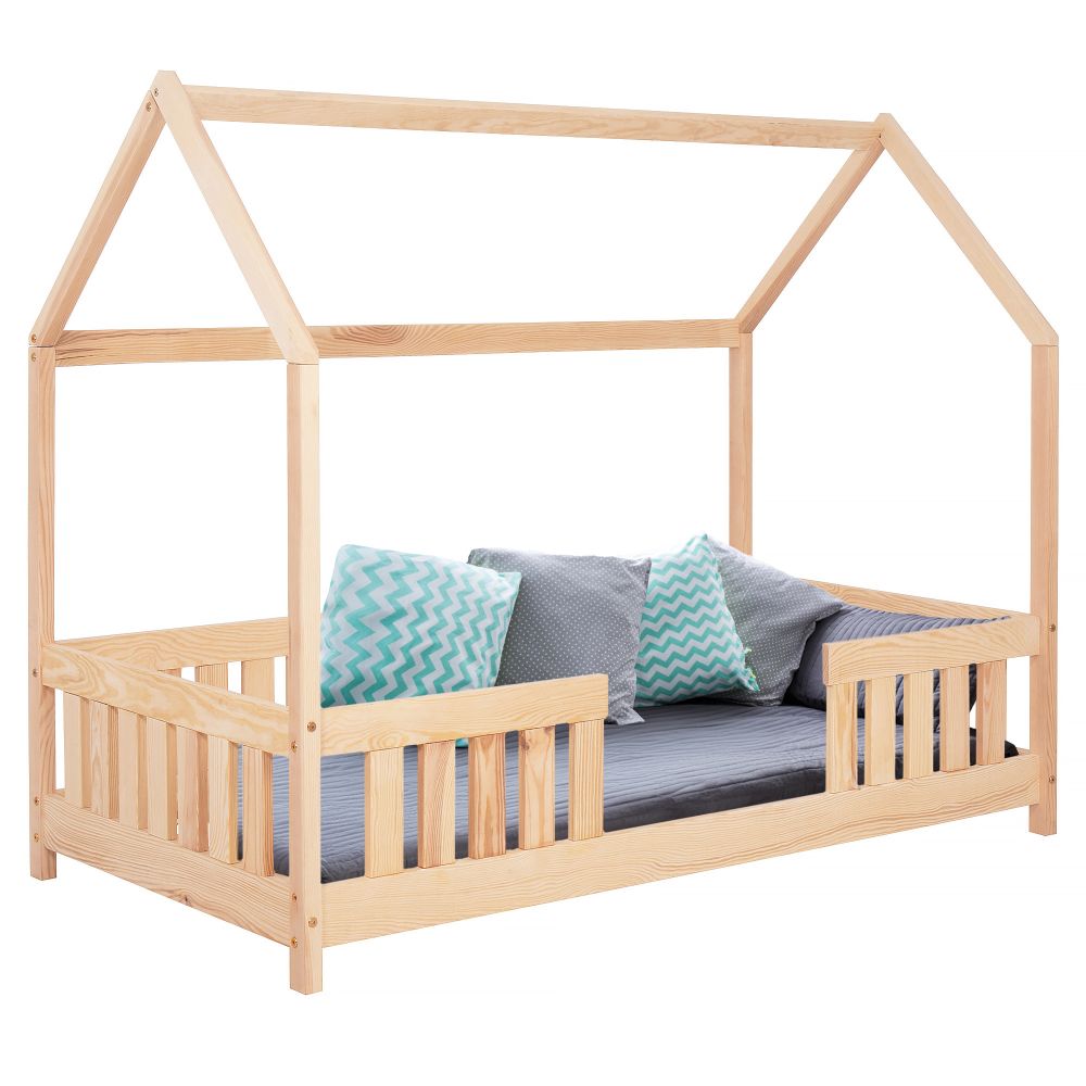 Stylová postel ve tvaru domečku DECHLAND KLÁRKA vytváří útulné a bezpečné místo pro spánek i hraní. Stabilní konstrukce z kvalitního borovicového dřeva zajišťuje pevnost a dlouhou životnost. Díky preciznímu opracování jsou hrany hladké a bezpečné pro děti. Ochranné zábradlí na bocích poskytuje maximální bezpečnost během spánku.