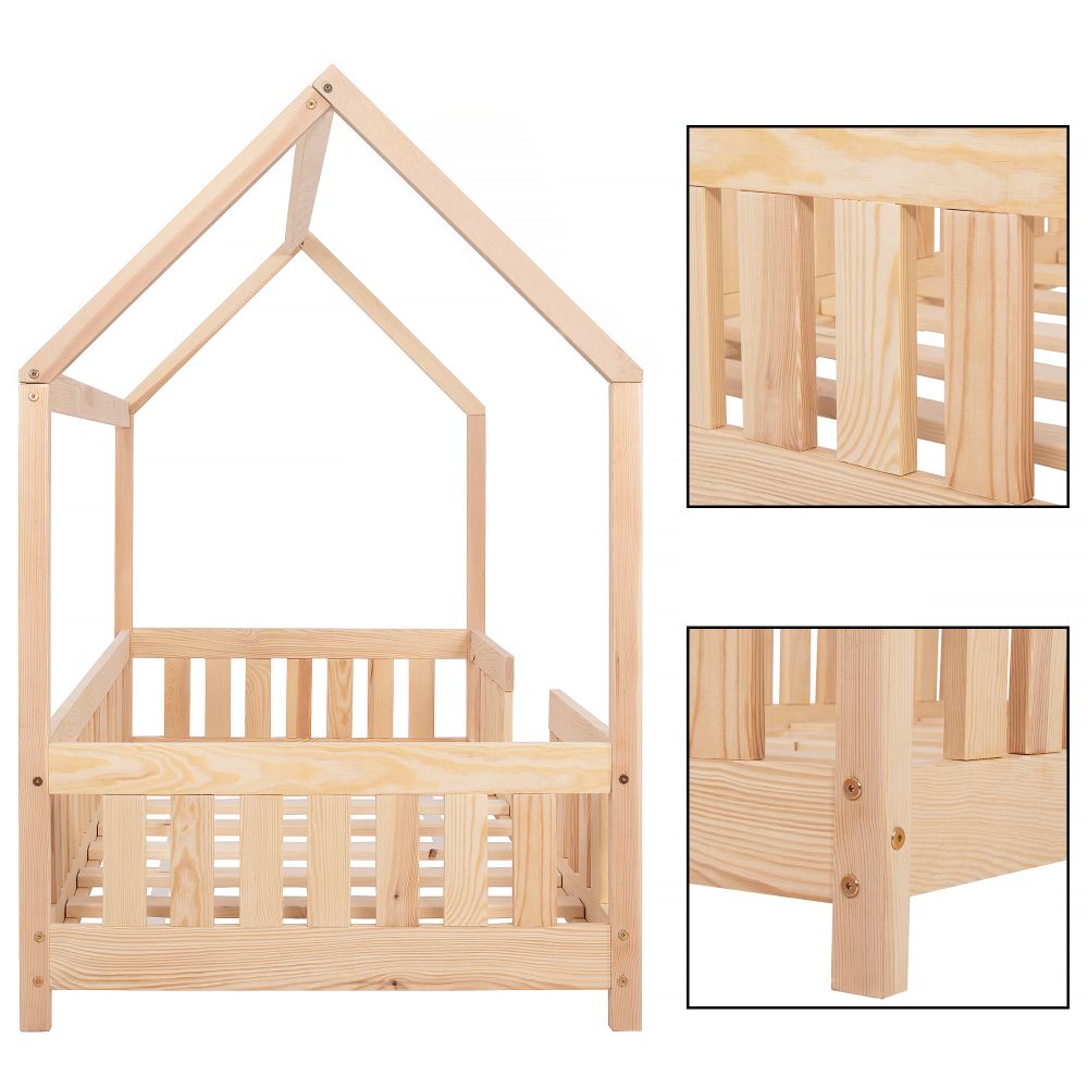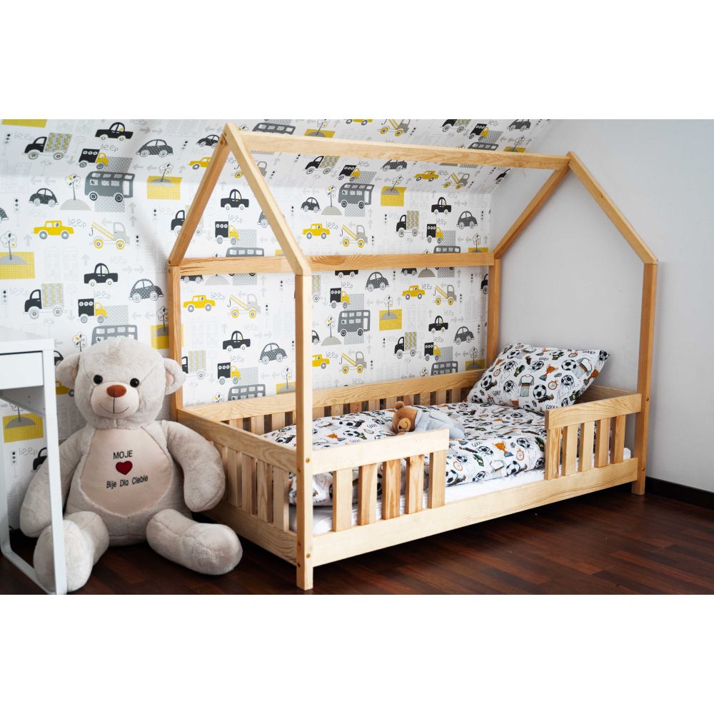 Dřevěná postel ve tvaru domečku poskytuje bezpečné a útulné místo pro spánek i hraní. Díky stabilní konstrukci z precizně opracovaného borovicového dřeva je pevná a odolná. Ochranné zábradlí zajišťuje bezpečnost během spánku, zatímco možnost dozdobení světýlky či plyšáky vytváří příjemnou atmosféru. Součástí postele je pevný lamelový rošt, který poskytuje správnou oporu pro matraci. Rozměr lůžka 160×80 cm nabízí dostatek prostoru pro klidný spánek i odpočinek.