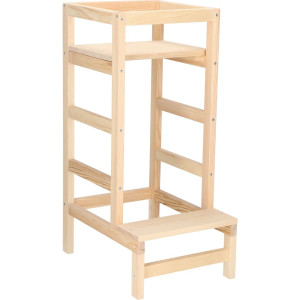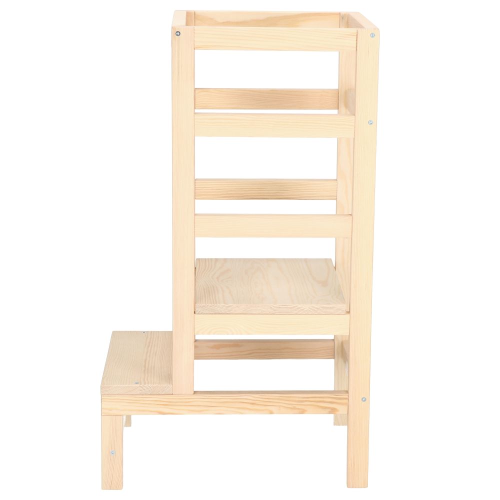 Rostoucí stolička typu Kitchen Helper umožní dítěti bezpečně se zapojit do každodenních činností v kuchyni či jinde v domácnosti. Díky rychlému nastavení ve 4 stupních roste spolu s dítětem a přizpůsobí se jeho výšce. Je vyrobena z kvalitního borovicového dřeva, má pečlivě zabroušené hrany, stabilní a bezpečnou konstrukci a nosnost až 100 kg. Přírodní provedení je ideální pro individuální úpravu dle vlastních představ a umožňuje nátěr libovolnou barvou. Dodáváno v demontovaném stavu, včetně nářadí. Vhodná od 1 roku. Rozměry 40x52x90 cm.