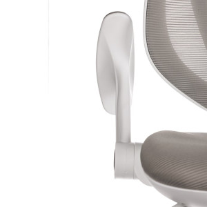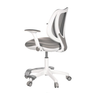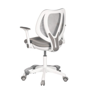 Židle má pevný opěrák potažený prodyšným síťovaným materiálem. Sedák ve stejném potahu poskytuje dostatek pohodlí díky svému vyměkčení.