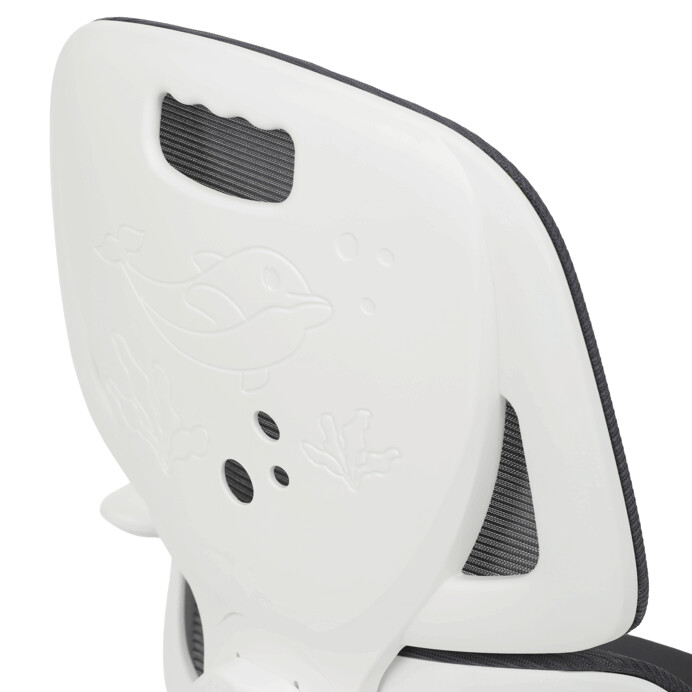 Dětská židle s šedou síťovinou nabízí pohodlné a zdravé sezení díky ergonomicky tvarované bederní opěrce a výškově nastavitelnému opěráku. Sedák je potažený prodyšným materiálem, který zajišťuje optimální cirkulaci vzduchu během dlouhého sezení. Odklápěcí područky umožňují snadné přizpůsobení prostoru a bílý plastový kříž s kolečky je určený pro tvrdé podlahy, což zajišťuje stabilitu a snadnou mobilitu. Mechanika umožňuje plynulé nastavení výšky sedáku podle potřeby dítěte. Celková konstrukce je navržena tak, aby podporovala správné držení těla a komfort při práci nebo hraní.