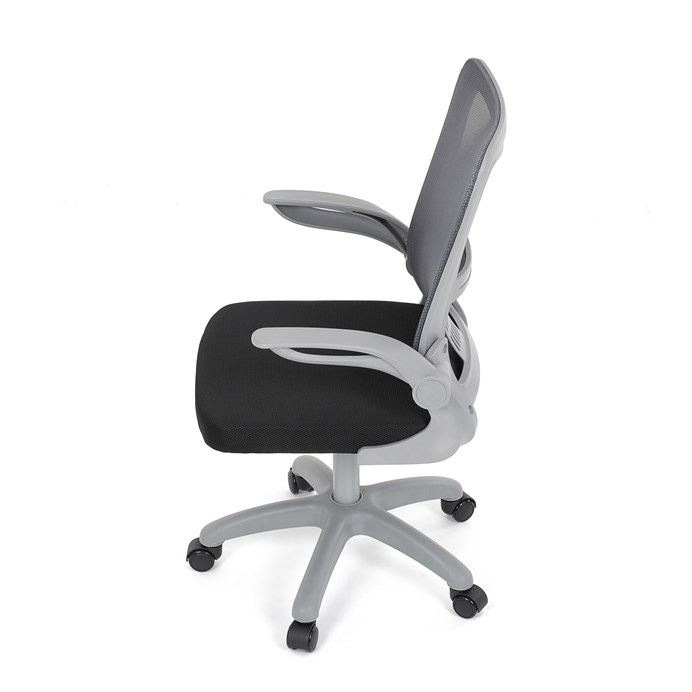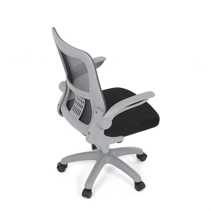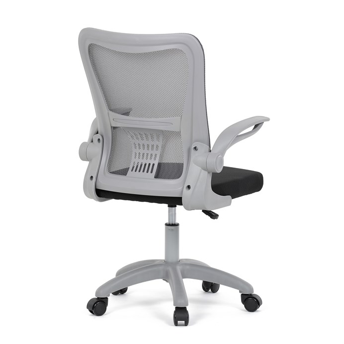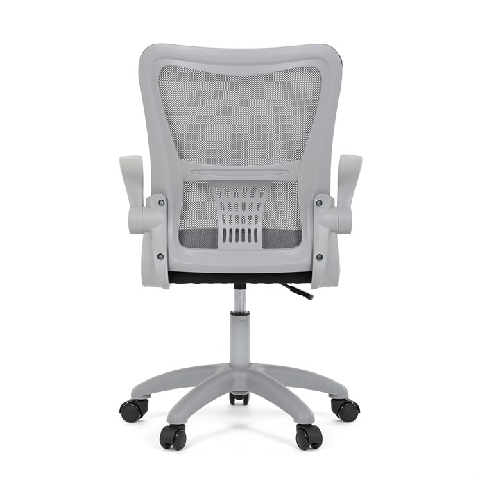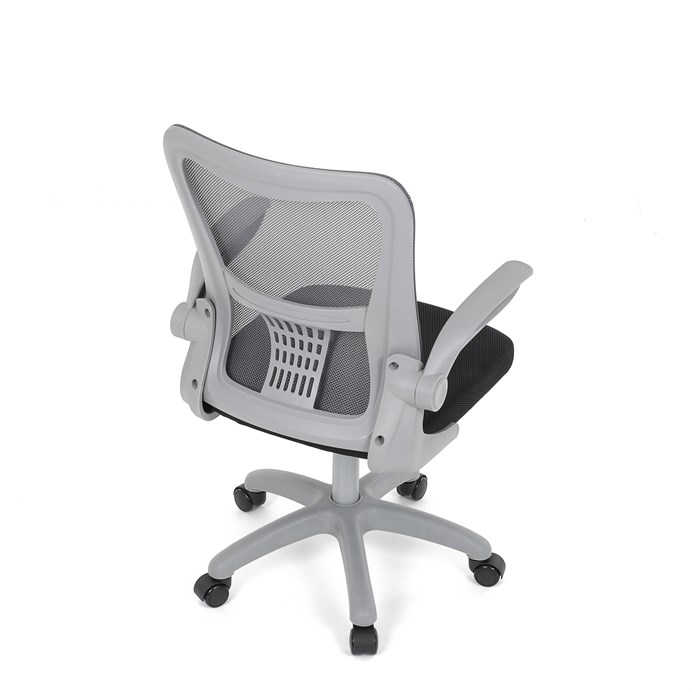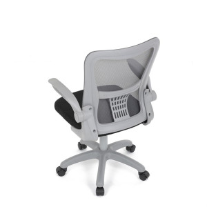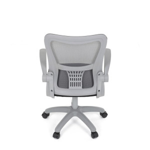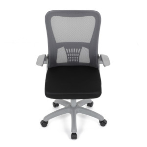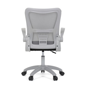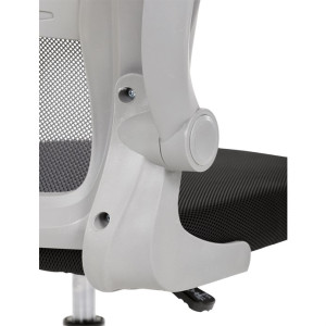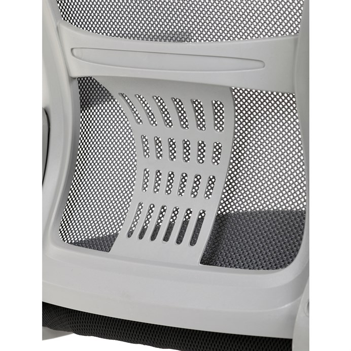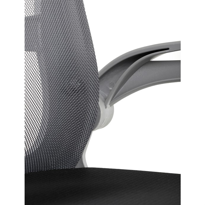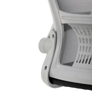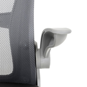 Díky inovativnímu designu obsahuje tato židle pevnou bederní opěrku, promyšleně navrženou pro posílení správného držení těla a zmírnění napětí v dolní části zad. Absence tradičních čalouněných područek dodává židli minimalistický půvab, zatímco funkce výklopných područek umožňuje snadné přizpůsobení jakékoliv výšce stolu a spojuje funkčnost se stylem.