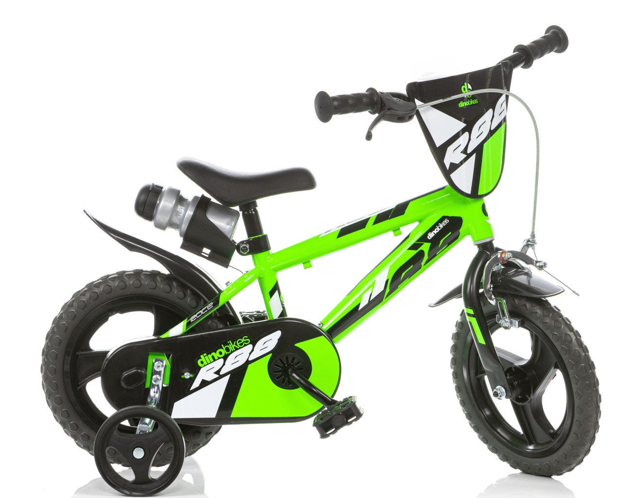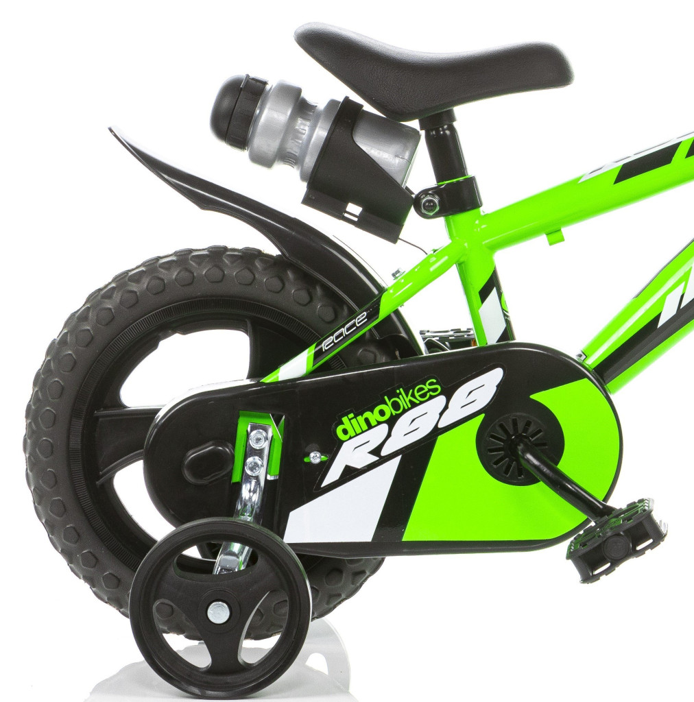 Kolo má plastová paprsková kola 12" (palců = 31 cm), pláště plastové s pěnovou výplní EVA, STÁLÝ POHON bez volnoběhu, bezpečnostní koncovku řídítek, přídavná balanční kolečka.
