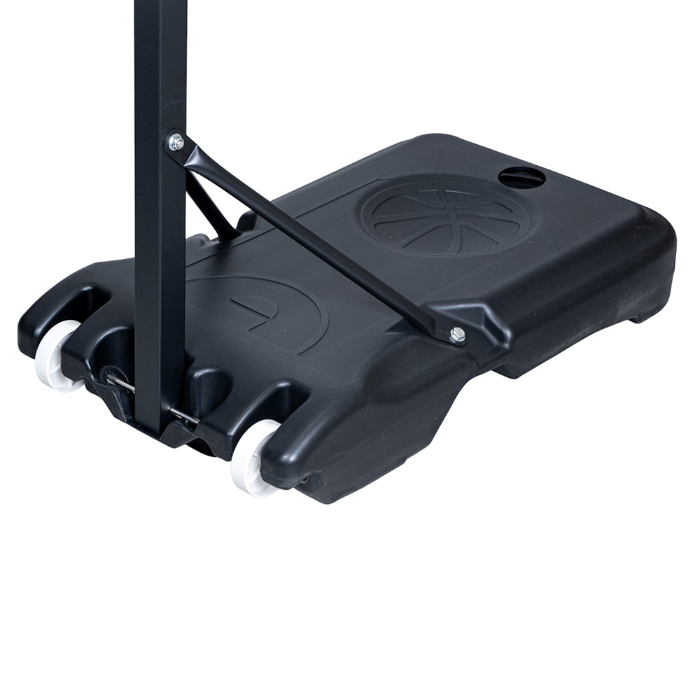 Samotná konstrukce je vyrobena z oceli a odolná vůči nepříznivým podmínkám. Bezpečné zatížení zajišťuje plastová plnitelná základna o objemu 37 l. Ke stabilizaci koše pak už stačí pouze nalít dovnitř vodu. Deska z polyetylenu neboli termoplastu zaštiťuje obruč a bezpečně odráží míče zpět.