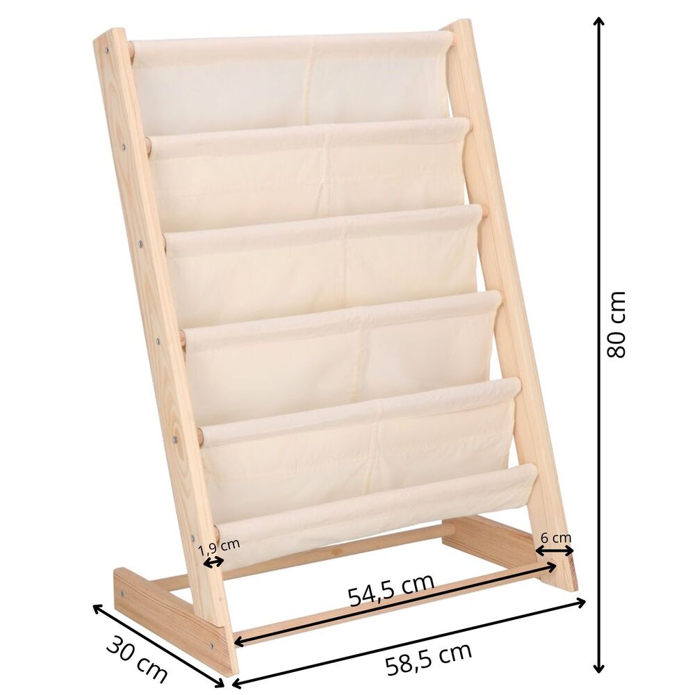 Díky 5 prostorným přihrádkám si dítě snadno najde svou oblíbenou pohádku nebo kreativní zápisky. Přírodní design dokonale ladí s moderním i klasickým interiérem.
