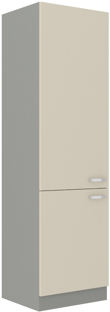 Potravinová skříň - spíže KARMEN vyrobená z kvalitního lamina a MDF. Korpus i sokl ( 10 cm ) jsou v barvě šedá a dvířka v barvě karmen krémová v lesku. Rozměry skříňky - šířka 60 cm, výška 210 cm, hloubka 57 cm. Skříň má levé otvírání dvířek. Úchyty jsou z kovu. V naší nabídce naleznete další výběr skříněk k sestavení celé kuchyně.