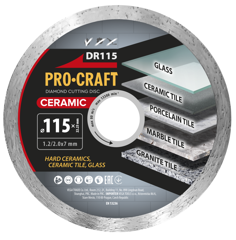 Diamantový řezný kotouč Ceramic Procraft DR115 je perfektní volbou pro každého, kdo hledá maximální přesnost, hladký řez a profesionální výsledky i při práci s těmi nejkřehčími materiály.