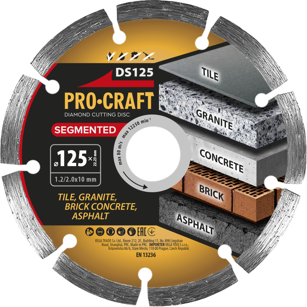 Diamantový kotouč Procraft DS125 je spolehlivým pomocníkem pro přesné řezání s vysokým výkonem a dlouhou životností, ideální pro mokré i suché použití.
