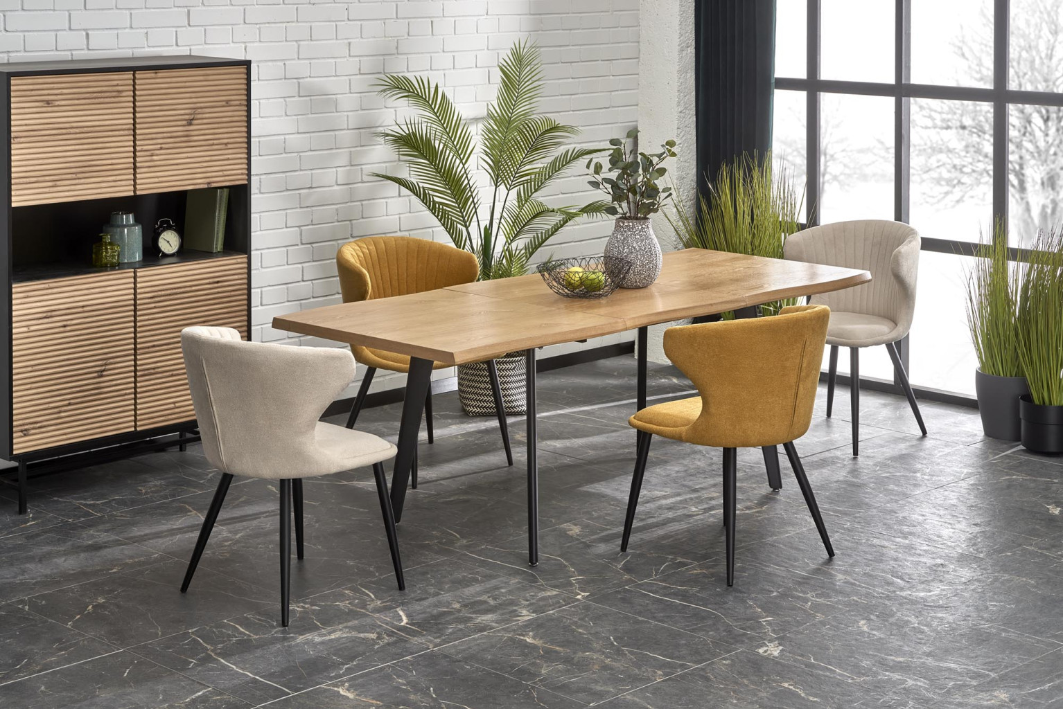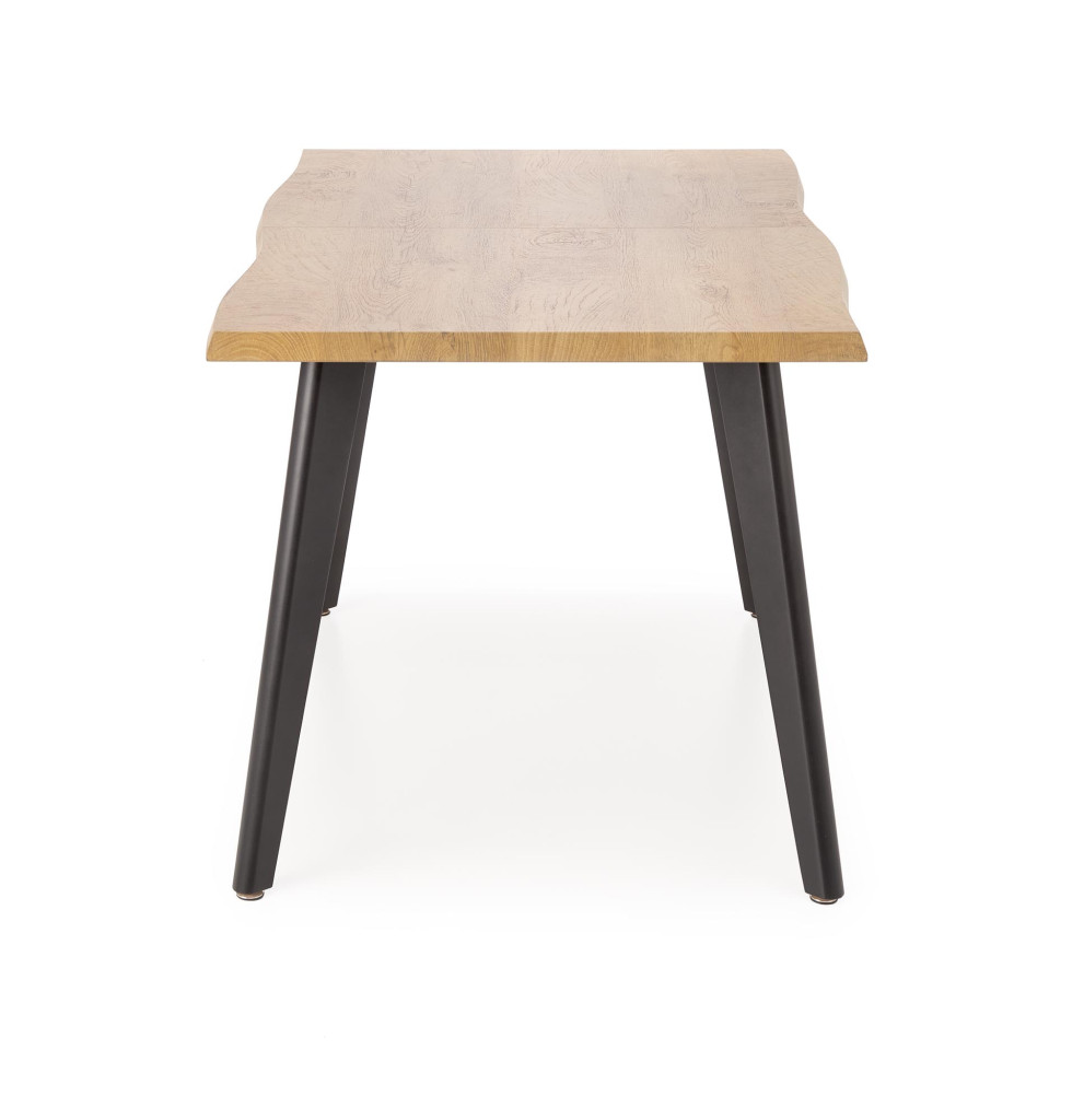 Dotaz na produkt Na splátky ještě dnesrozměry: 150-210/90/75 cm, rozkládací stůl, materiál: dýhovaná MDF / masivní dřevo, barva: deska - přírodní dub, nohy - černá POZNÁMKA: po vylití tekutin na desku stolu ji ihned vytřete do sucha abyste zabránili absorpci vody materiálem pracovní desky.
