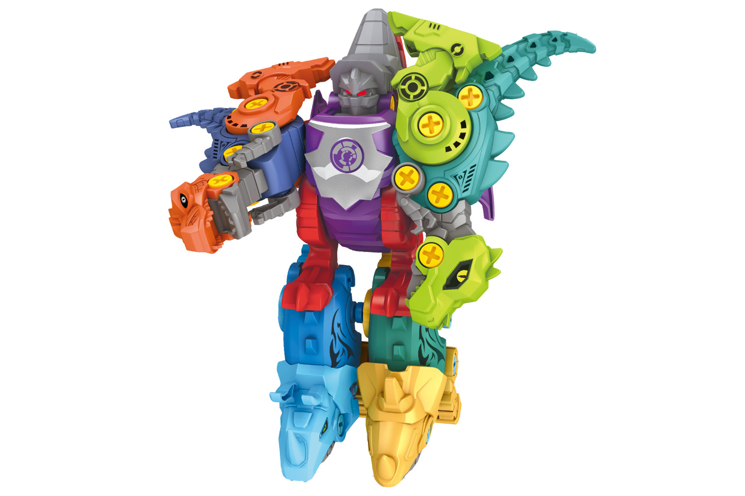 Dotaz na produktDino šroubovací set 5v1. Velikost 20x20x25 cm. Set 5 dinosaurů. Složením všech dinosaurů dohromady vznikne robot s vystřelovací zbraní.