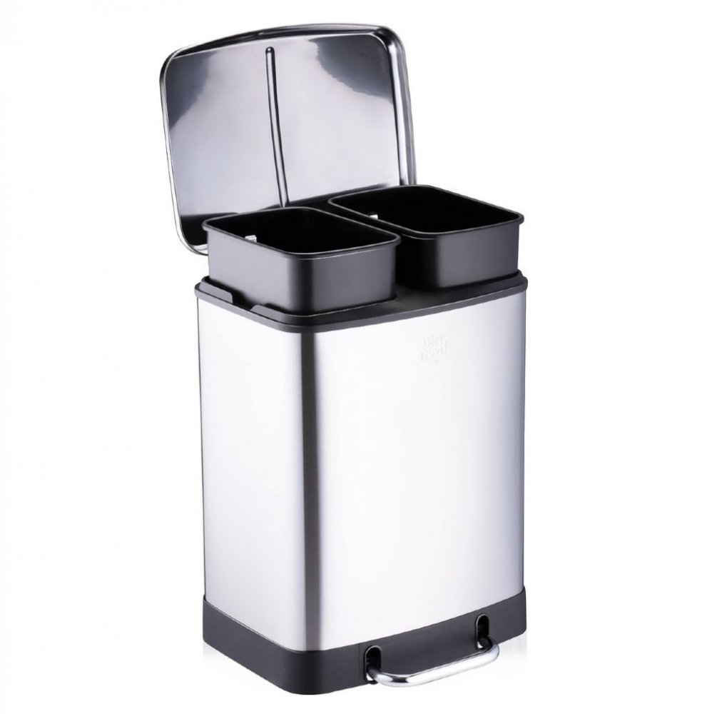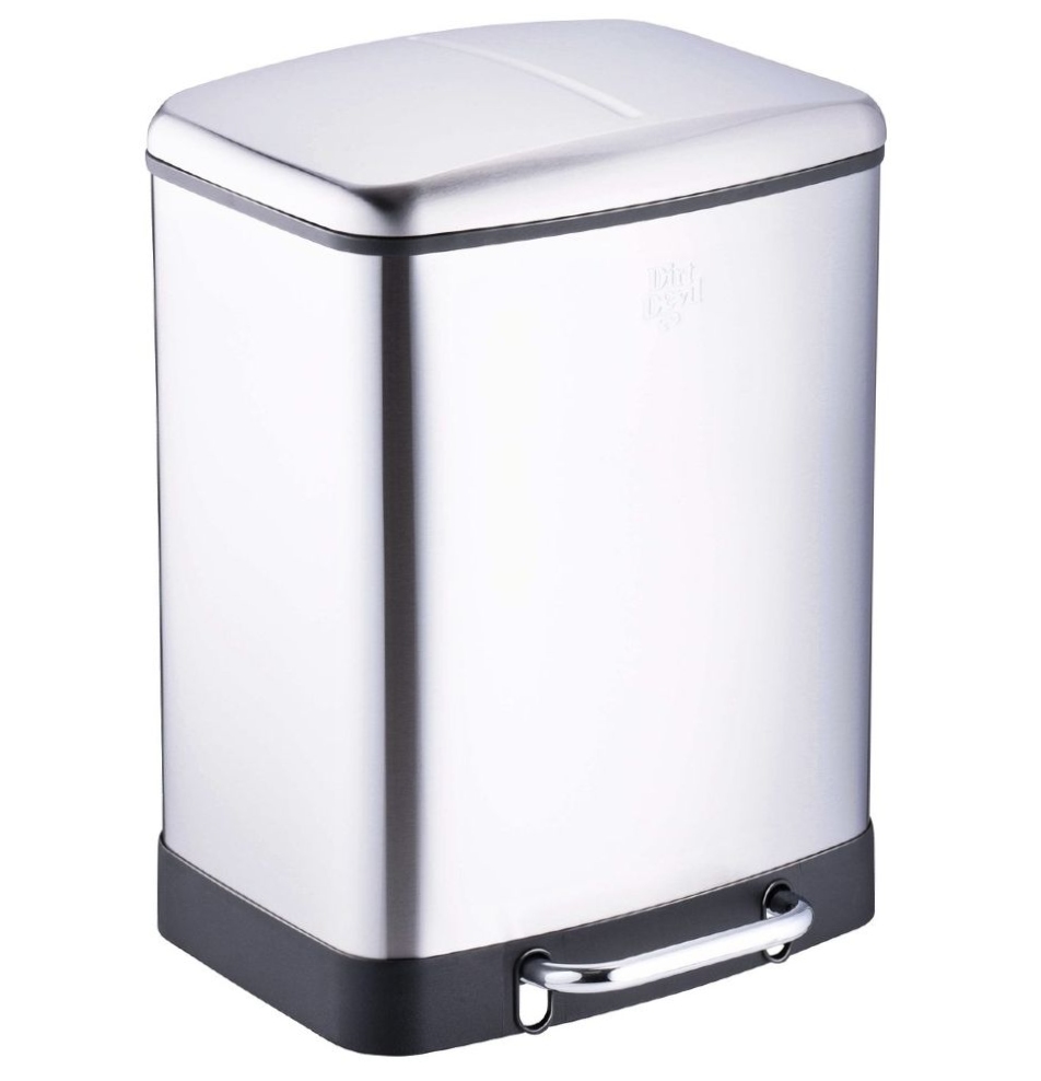 Dotaz na produkt Na splátky ještě dnesNakládejte s odpadem ve vaší domácnosti vědomě díky tomuto odpadkovému koši Dirt Devil se 2 přihrádkami. Moderní šlapací odpadkový koš má 2 samostatné nádoby o objemu 12 litrů. Díky tomu je třídění odpadu mnohem jednodušší, protože do jednoho kontejneru můžete dát například plast a do druhého karton a papír. Díky nožnímu pedálu ve spodní části systému separace odpadu můžete otevřít víko bez použití rukou. Víko systému separace odpadu je vybaveno mechanismem soft-close. To znamená, že víko se zavírá tiše a tiše a zápach tak rychle neuniká. Pedálový odpadkový koš je vyroben z nerezové oceli stříbrné barvy. Tento materiál je známý tím, že je pevný a odolný, ale také se snadno udržuje v čistotě.