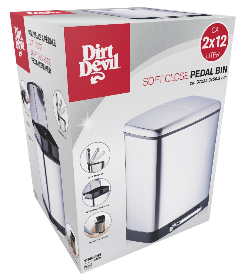 Technické údaje Systém separace odpadu Dirt Devil pedálový odpadkový koš 2 x 12L