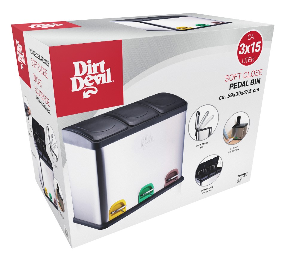 Dotaz na produkt Na splátky ještě dnesdpadkový koš na tříděný odpad Dirt Devil 3 x 15 l – efektivní a tiché třídění odpadu