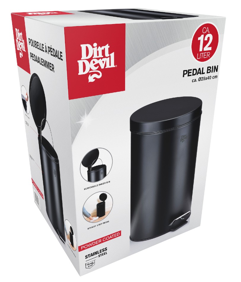 Dotaz na produktNenechávejte své odpadky ležet nahodile, ale ukládejte je přehledně do tohoto praktického pedálového koše Dirt Devil o objemu 12 litrů. Kbelík vyrobený z odolné černé nerezové oceli se perfektně hodí téměř ke každému dekoru a je vhodný do kuchyně, koupelny nebo kanceláře. Nožní pedál ve spodní části kbelíku usnadňuje používání, protože můžete otevřít víko, aniž byste se ho dotkli. Mechanismus měkkého zavírání navíc zajišťuje tiché otevírání a zavírání víka a zároveň udržuje nežádoucí pachy uvnitř. Robustní černá nádoba z nerezové oceli odolá každodennímu používání a snadno se čistí. Vyprázdnění pedálového koše je velmi jednoduché: vyjměte vnitřní kbelík, zlikvidujte odpad a znovu vložte vnitřní kbelík.