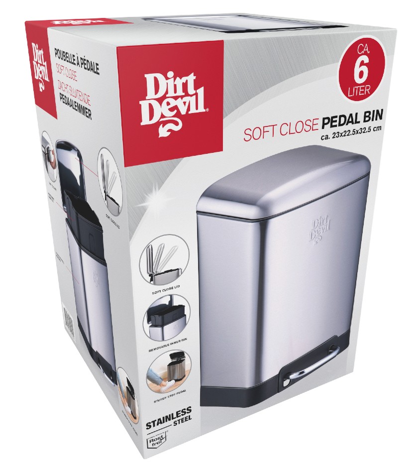 Technické údaje Dirt Devil pedálový odpadkový koš s funkcí měkkého zavírání 6L