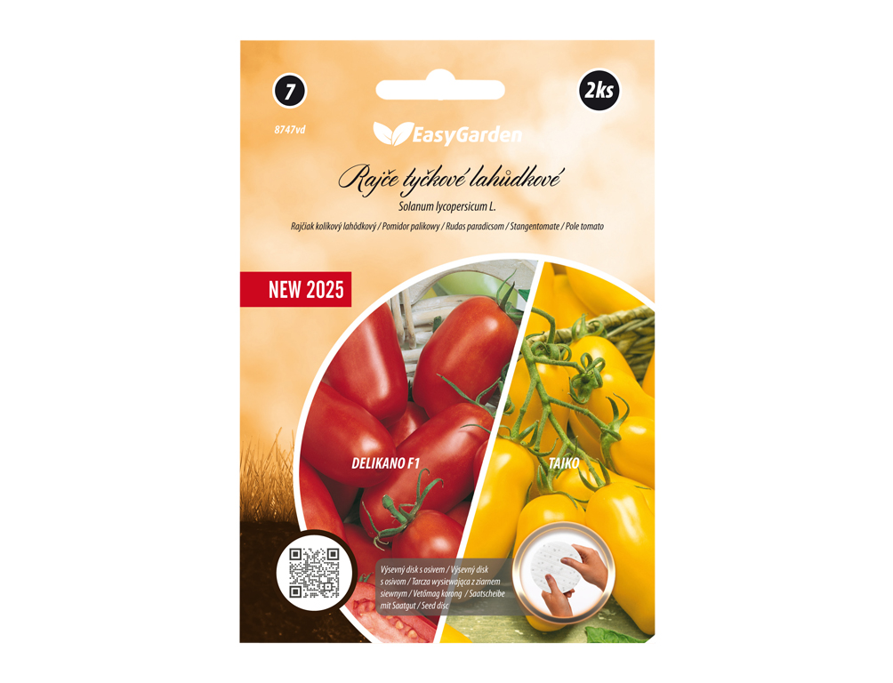 Dotaz na produktPřipravená směs má optimální počet semen a předurčenou vzdálenost mezi semínky, rostliny tak není potřeba následně jednotit či protrhávat. Semena mají vysokou klíčivost a pouze potřebné množství. V balení jsou 2 disky se 2 odrůdami lahůdkových rajčat - 1 disk Taika a 1 disk Delicana F1. Průměr disku: 8 cm.