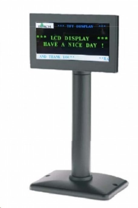 Dotaz na produkt Na splátky ještě dnesPořiďte si do své provozovny barevný zákaznický TFT-LCD displej Birch PD500 s 5" úhlopříčkou. Využijete ho především k pokladním či poštovním přepážkám. Hlavici můžete v horizontální poloze otočit až o 355 °. Ve 4 řádcích zobrazuje až 80 znaků. Ovládáte ho přes USB nebo sériové RS232 rozhraní pomocí příkazového jazyka podle vašich preferencí. Těšit se můžete na dlouhou střední dobu mezi poruchami, a to až 30 000 hodin.