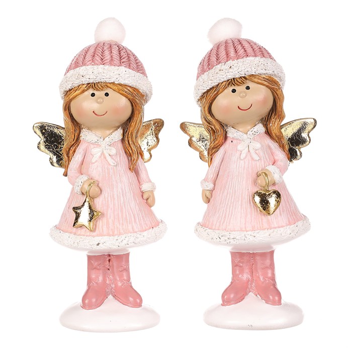 Dotaz na produktOživte svůj interiér s našimi polyresinovými figurkami dívek v růžových oblečcích a čepicích. Tyto roztomilé postavičky jsou dokonalým doplňkem vaší vánoční a zimní výzdoby. Mix dvou druhů figur, jedna držící hvězdičku a druhá srdíčko, dává možnost výběru. Oba druhy sošek ve stejném stylu, mají malá roztomilá křidélka, která dodávají do vašeho prostoru nádech nebeské lehkosti.