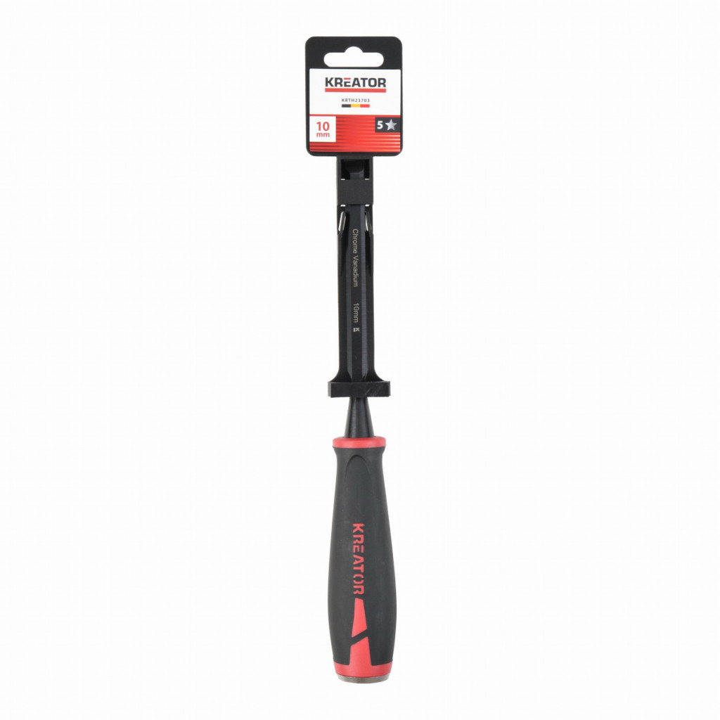 Dotaz na produktDláto na dřevo je nezbytné pro každého kutila, který pracuje se dřevem. Toto malé dláto KRTH23703 z naší řady Kreator o průměru 10 mm je ideální pro detailní práci. Díky robustní úderové hlavě v zadní části dláta můžete snadno použít kladivo pro vynaložení větší síly. Měkká protiskluzová rukojeť poskytuje pevný úchop.
