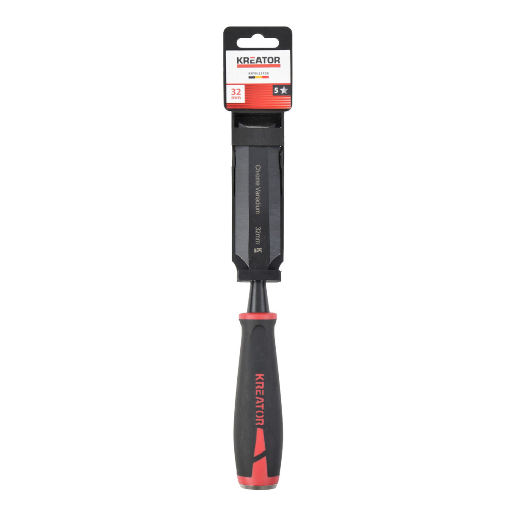 Dotaz na produktDláto na dřevo je nezbytné pro každého kutila, který pracuje se dřevem. Toto malé dláto KRTH23708 z naší řady Kreator o průměru 32 mm je ideální pro detailní práci. Díky robustní úderové hlavě v zadní části dláta můžete snadno použít kladivo pro vynaložení větší síly. Měkká protiskluzová rukojeť poskytuje pevný úchop.