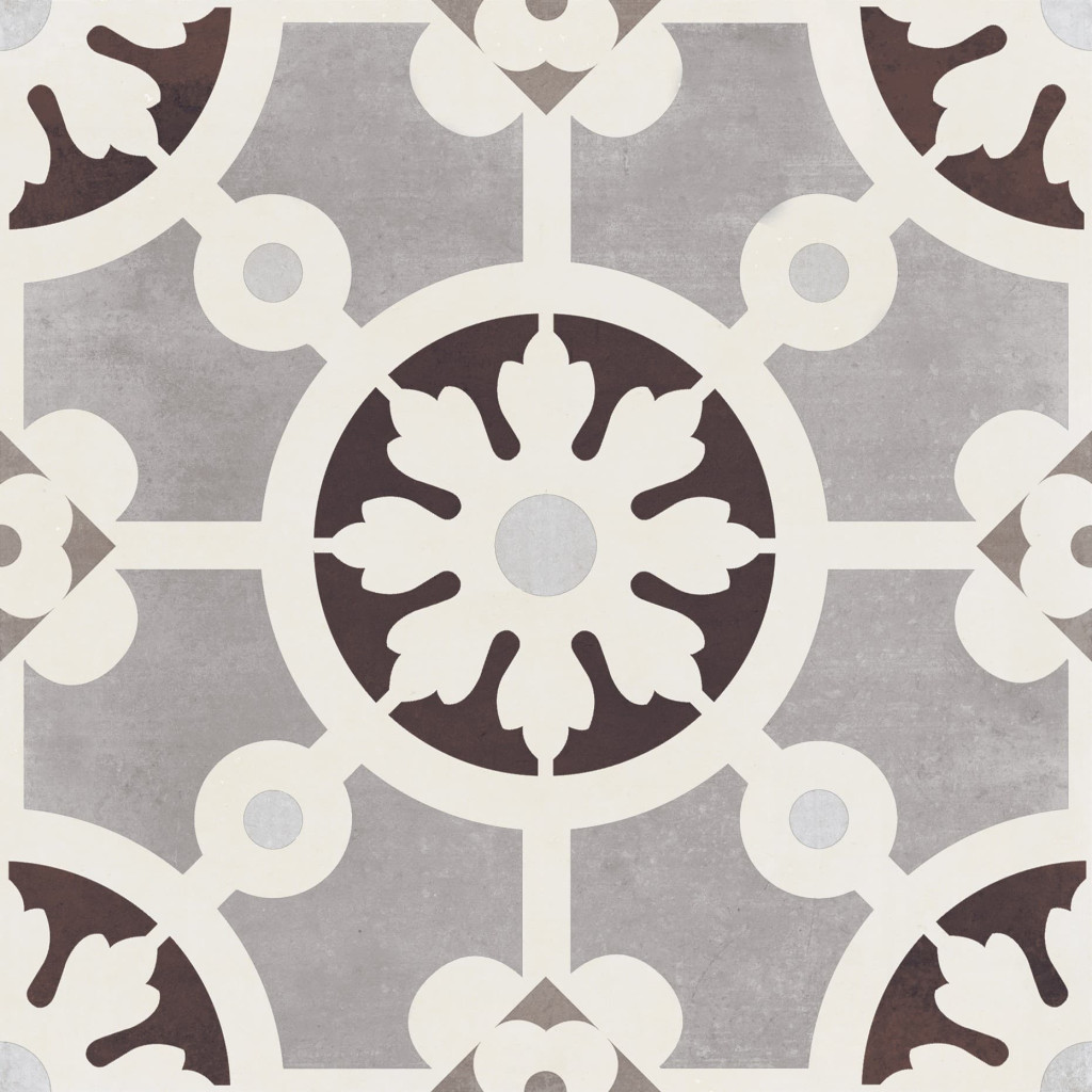 PARAMETRY:Druh výrobku: dlažba Materiál: keramika Určení: exteriér i interiér Barva popisná: marrone Barva základní: šedá Design: patchwork Povrch: mat Jakost: I. jakost Deklarovaný rozměr (cm):...