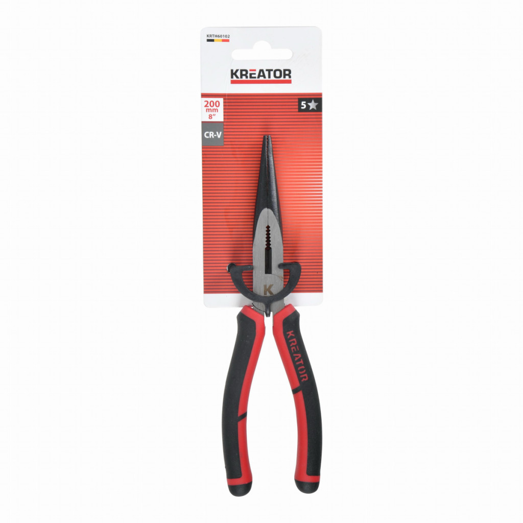 Dotaz na produktTyto vysoce kvalitní kleště KRTH60102 od Kreator s dlouhými plochými čelistmi lze použít k držení, stříhání, odizolování a krimpování vodičů o průměru až 50 mm. Jsou vyrobeny z materiálu CR-V s povrchovou úpravou satin a mají délku 200 mm. Měkké gumové rukojeti poskytují pevný, protiskluzový úchop a pohodlné používání.