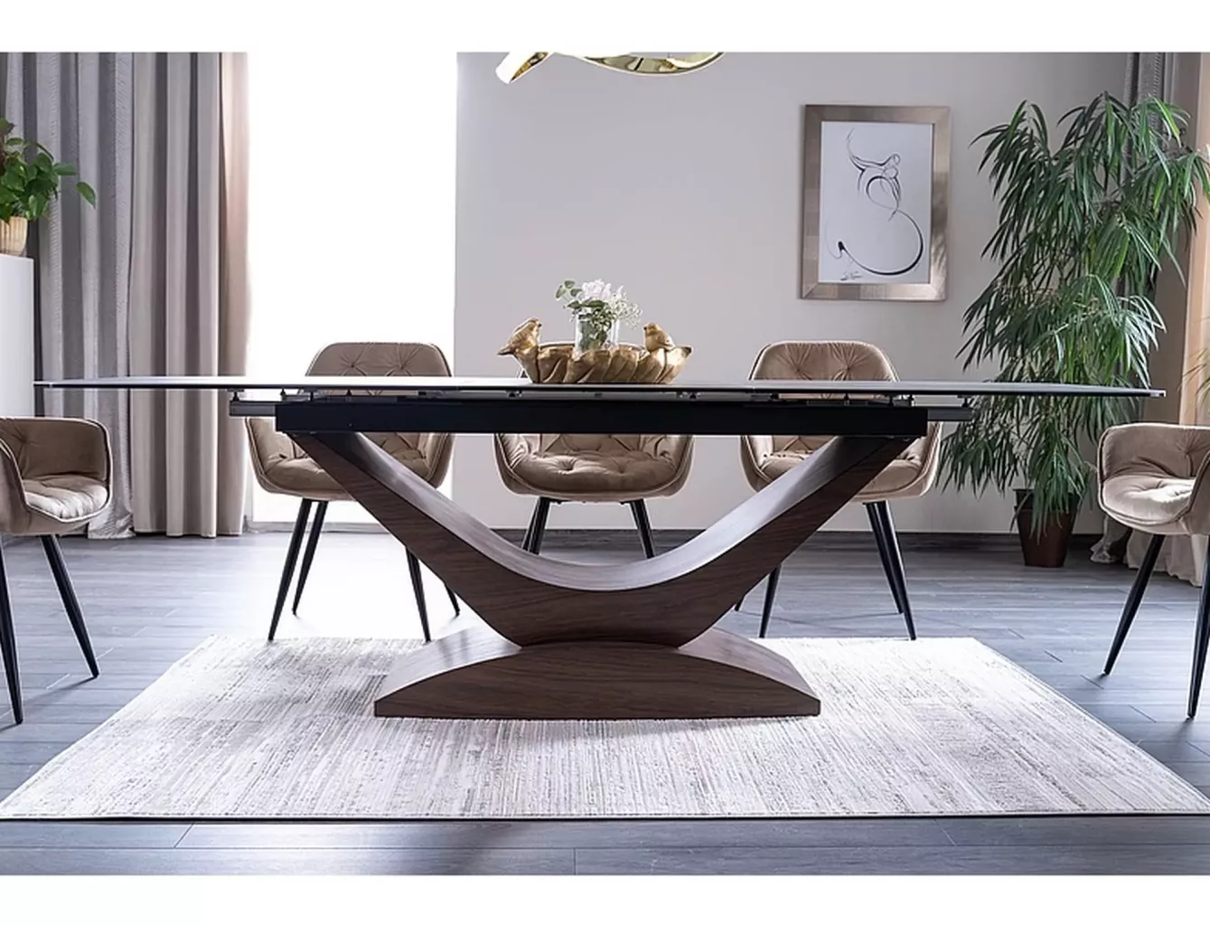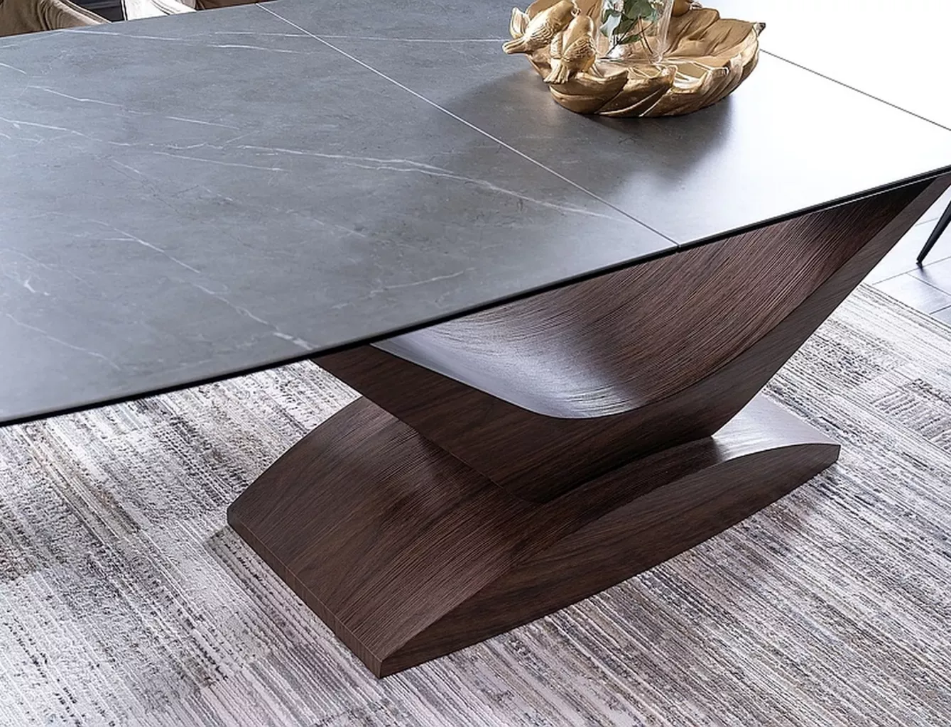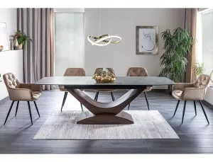 deska: tvrzené sklo + italská keramika, mramorový efekt, rám: MDF, barva: šedá / ořech