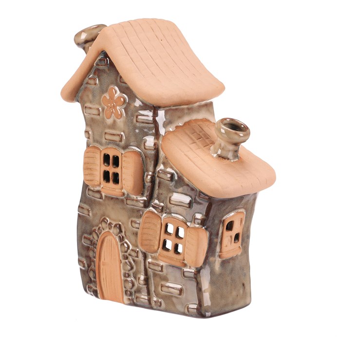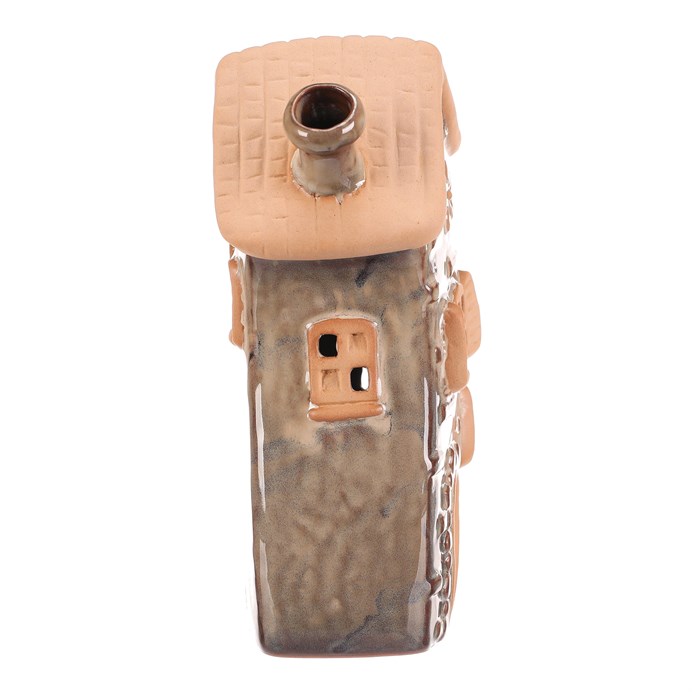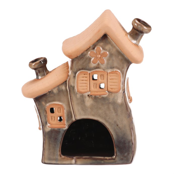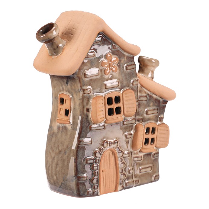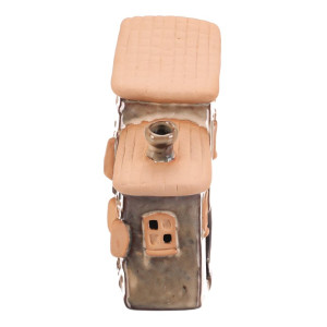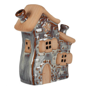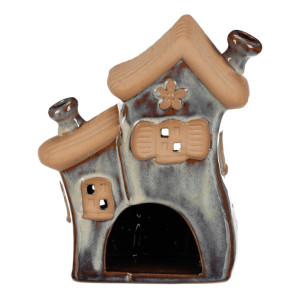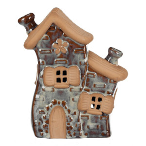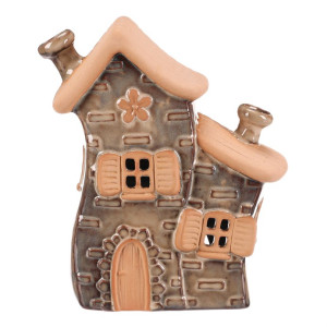 Dotaz na produktKeramický domeček v hnědém provedení je určený pro umístění čajové svíčky, která v jeho útrobách vytváří příjemnou atmosféru. Detailní zpracování připomíná tradiční kamenný dům s okny a dveřmi, střecha je matná a jemně strukturovaná. Díky kombinaci lesklé a matné glazury působí dekorace vizuálně zajímavě a přirozeně. Domeček je vhodný pro použití v interiéru jako dekorativní prvek, který oživí každý prostor. Jeho rozměry odpovídají velikosti M, což zajišťuje snadné umístění na poličku nebo stůl.