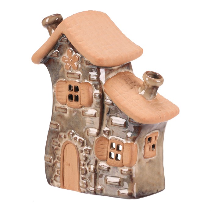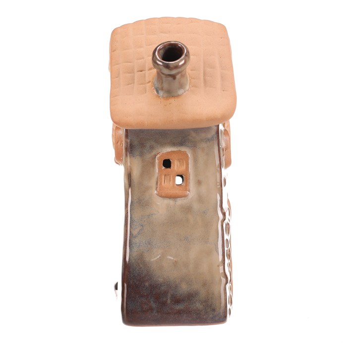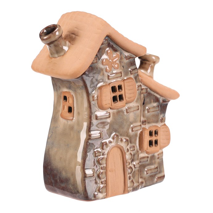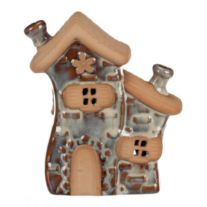 Dotaz na produktKeramický domeček v hnědém odstínu je určený pro umístění čajové svíčky, která v něm vytváří příjemnou atmosféru díky průsvitným okénkům. Detailní zpracování střechy a oken s okenicemi dodává dekoraci rustikální charakter. Kompaktní velikost S umožňuje snadné umístění na poličku, stůl nebo parapet. Povrch je hladký s jemně glazurovanými i matnými částmi, což podtrhuje jeho tradiční vzhled. Domeček je vhodný jako dekorativní prvek do interiérů s přírodními a teplými tóny.