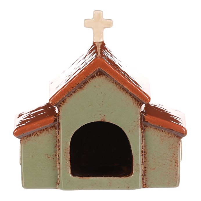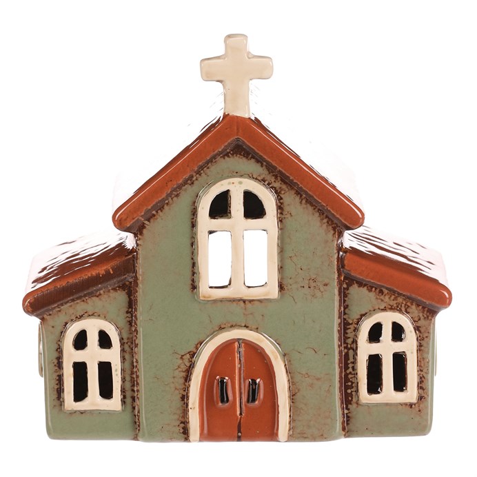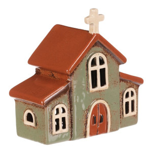 Dotaz na produktKeramický mini kostelík s křížkem, zelenou fasádou a červenou střechou je krásnou dekorací s prostorem na čajovou svíčku. Po zapálení svíčky vytváří úžasný světelný efekt, kdy paprsky jemně prosvítají skrze okénka. Perfektní doplněk pro dlouhé podzimní a zimní večery.