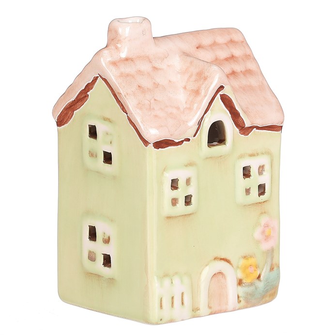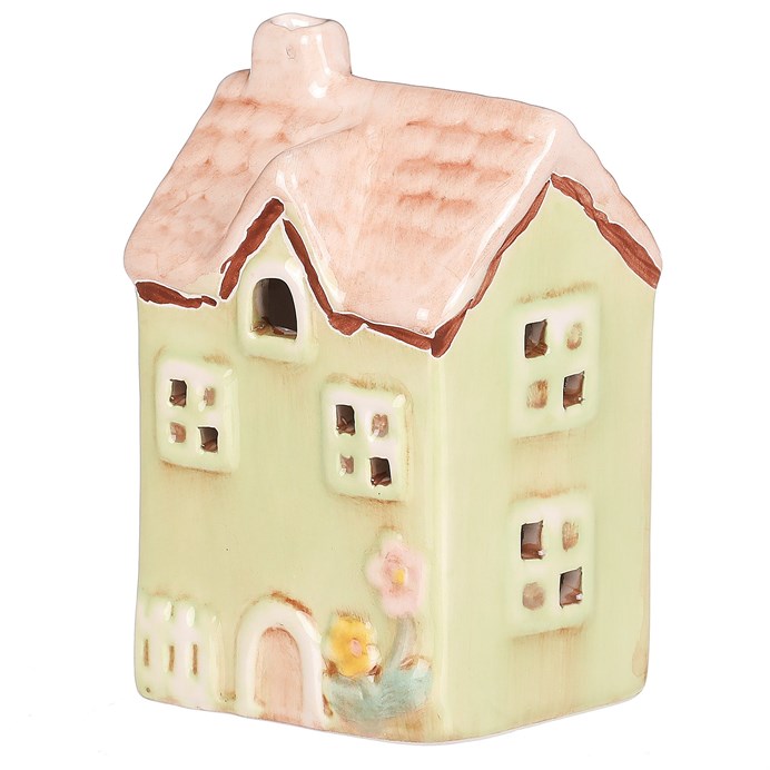 Dotaz na produktTento světle zelený keramický domek s růžovou střechou přináší do vašeho prostoru svěží jarní atmosféru. Ozdobený květinami a plotem, vytváří dokonalou idylu, zatímco jemné LED osvětlení dodává kouzelnou záři. Ideální jako dekorace na poličku nebo stůl, která rozzáří každý kout domova.