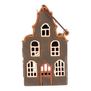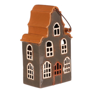 Dotaz na produkt Na splátky ještě dnesKeramický patrový domek s šedou fasádou a hnědou střechou působí, jako by byl vytržený z malebného historického náměstí. Prostor pro čajovou svíčku mu přidává na estetické hodnotě, neboť po zapálení knotu, budou paprsky světla krásně pronikat skrze všechna okénka. Díky praktické rukojeti ho snadno přemístíte. Perfektní podzimní dekorace pro hřejivou atmosféru.