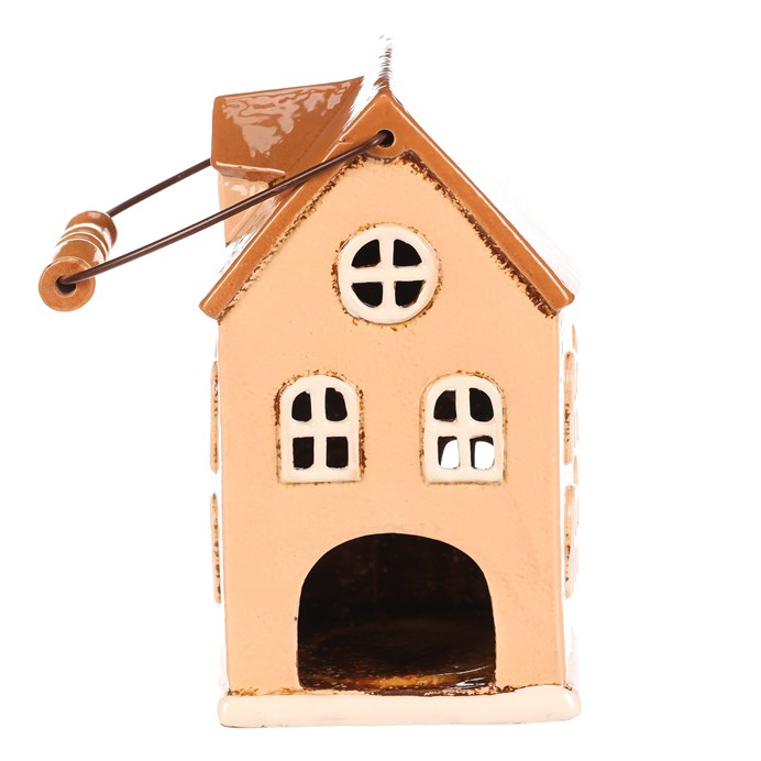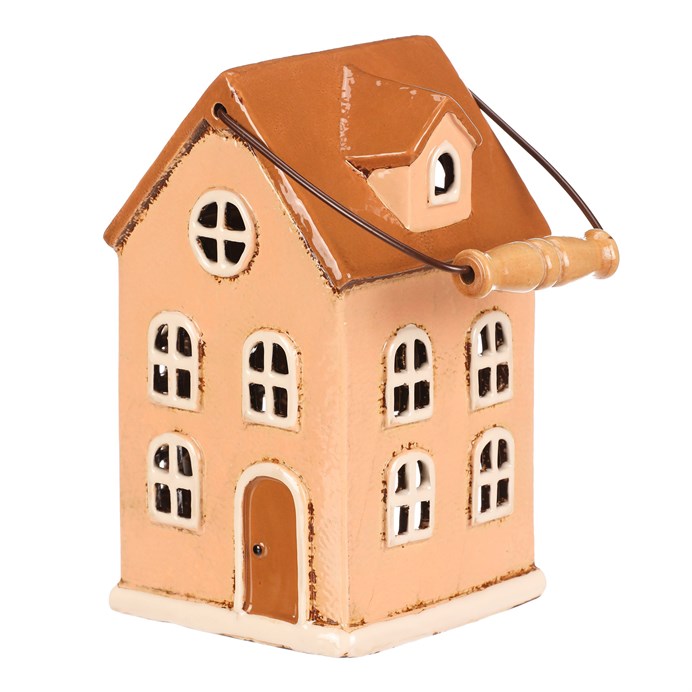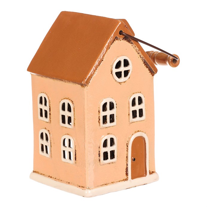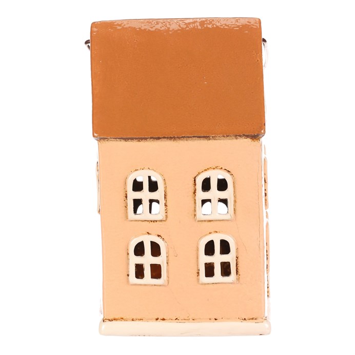 Dotaz na produkt Na splátky ještě dnesKeramický patrový domek s prostorem pro čajovou svíčku zaujme svou okrově žlutou fasádou a hnědou střechou. Díky rukojeti ho snadno přenesete, kam potřebujete. Po zapálení svíčky vytvoří krásný světelný efekt, kdy paprsky jemně pronikají skrze okénka. Ideální podzimní dekorace, která vnese do vašeho domova teplé světlo a útulnou atmosféru.