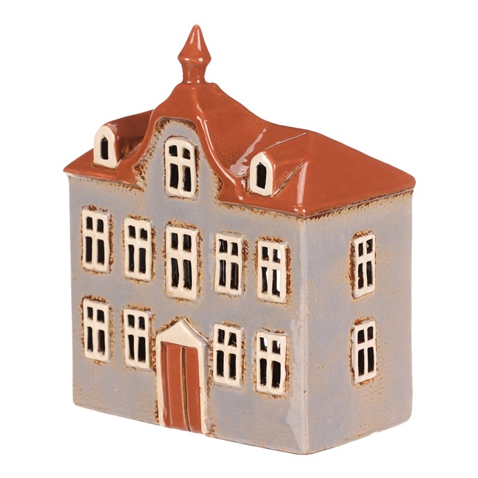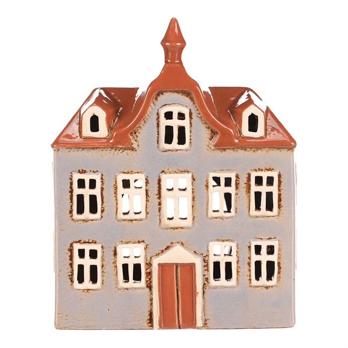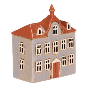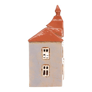 Dotaz na produktKeramický domek ve tvaru radnice se světle modrou fasádou a oranžovou střechou je stylovou dekorací na čajovou svíčku. Po zapálení svíčky bude světlo krásně prosvítat okénky a vytvoří jedinečnou atmosféru. Krásný doplněk pro podzimní i zimní večery.