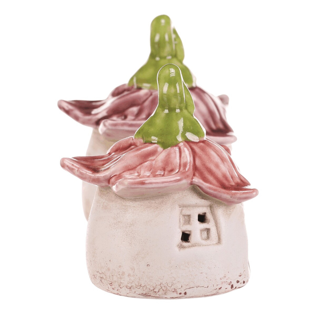 Dotaz na produkt Na splátky ještě dnesKeramický domeček s LED osvětlením ve střední velikosti přináší do interiéru jemnou atmosféru a dekorativní prvek s nádechem pohádkového stylu. Jeho tělo je zdobeno červenými střešními taškami a zeleným komínkem, které vytvářejí příjemný barevný kontrast. Díky zabudovanému LED osvětlení domeček příjemně prosvětluje okolí a vynikne na poličce, okenním parapetu nebo jako součást dekorativních aranžmá. Praktický otvor v horní části umožňuje snadné zavěšení, což rozšiřuje možnosti jeho využití v prostoru. Je vhodný pro vytvoření útulné atmosféry v domácnosti i jako originální dekorace na různé příležitosti.