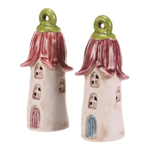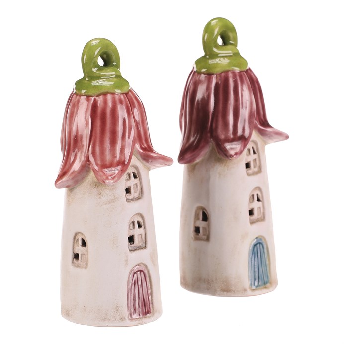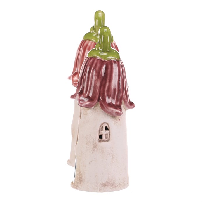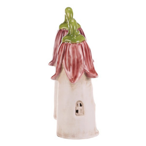 Dotaz na produkt Na splátky ještě dnesKeramický domeček s LED osvětlením v menší velikosti S zaujme svým hravým designem připomínajícím květinu s červenou střechou a zeleným zakončením. Díky pečlivému ručnímu zpracování a jemným detailům, jako jsou okénka a dveře v různých barvách, vytváří příjemnou atmosféru v interiéru. LED osvětlení uvnitř domečku dodává dekoraci teplý a měkký světelný efekt, který je ideální pro doplnění útulného prostředí. Domeček je vhodný k umístění na poličku, komodu nebo jako součást tematické dekorace. Materiál keramika zajišťuje kvalitní provedení a snadnou údržbu.