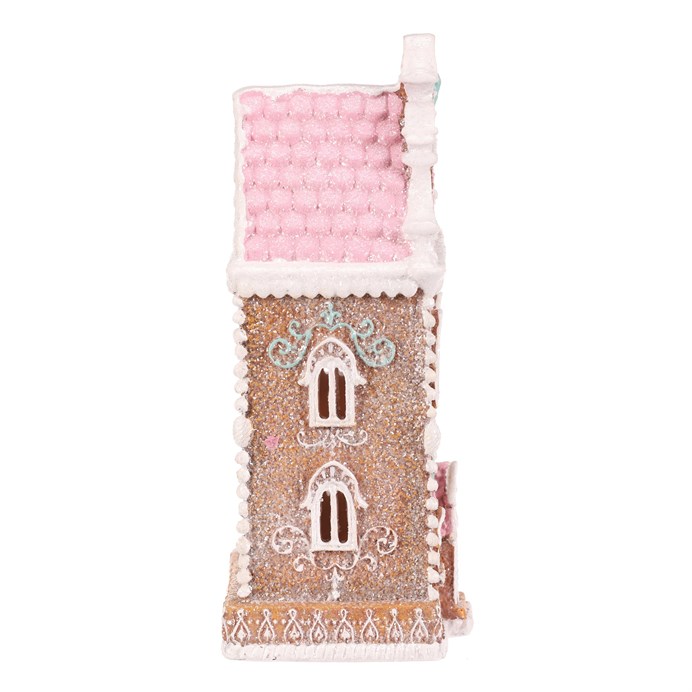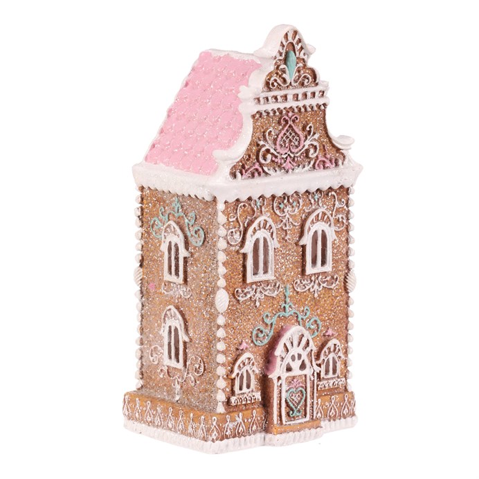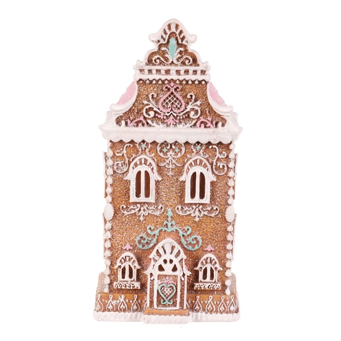 Dotaz na produktPolyresinová stolní dekorace, v podobě zdobeného patrového domku v perníkovém designu, bude nádhernou dekorací pro kouzelné vánoční období. Vypadá jako by byl skutečně vytvořen z perníku a ozdoben sladkou barevnou polevou. To ale ještě není vše! Díky zabudovanému LED osvětlení uvnitř, si můžete po jeho rozsvícení vychutnávat pohled na nádherně rozptýlené paprsky, které vycházejí skrze všechna okénka ven.