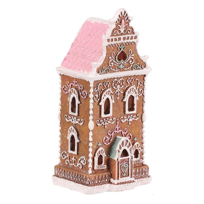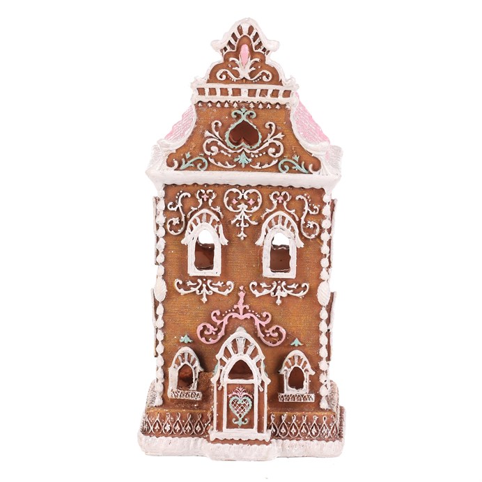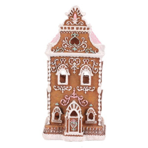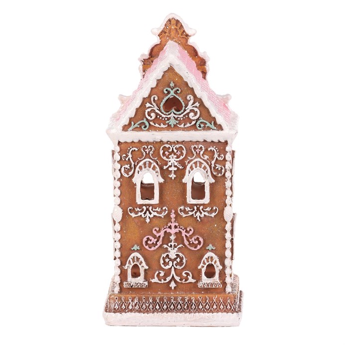 Dotaz na produktPolyresinová stolní dekorace, v podobě zdobeného patrového domku v perníkovém designu, bude nádhernou dekorací pro kouzelné vánoční období. Vypadá jako by byl skutečně vytvořen z perníku a ozdoben sladkou barevnou polevou. To ale ještě není vše! Díky zabudovanému LED osvětlení uvnitř, si můžete po jeho rozsvícení vychutnávat pohled na nádherně rozptýlené paprsky, které vycházejí skrze všechna okénka ven.