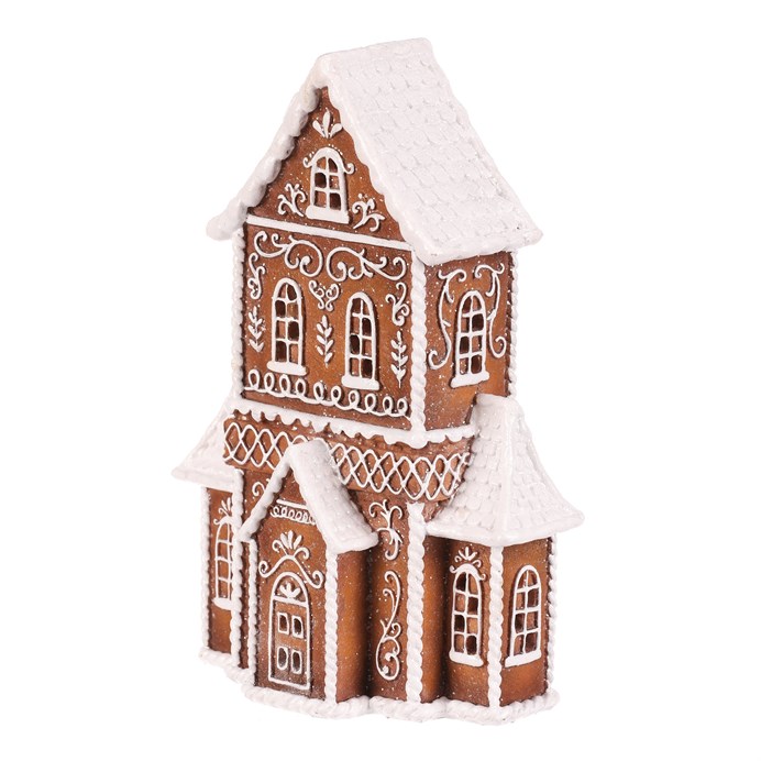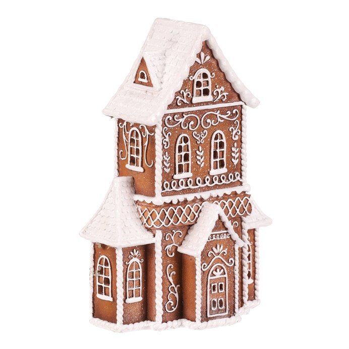 Dotaz na produktPolyresinová stolní dekorace v podobě patrového domku v perníkovém designu bude nádhernou dekorací pro kouzelné vánoční období. Vypadá jako by byl skutečně vytvořen z perníku o ozdoben sladkou bílou polevou. To ale ještě není vše! Díky zabudovanému LED osvětlení uvnitř, si můžete vychutnávat pohled na nádherně rozptýlené paprsky, které vycházejí skrze všechna okénka ven.